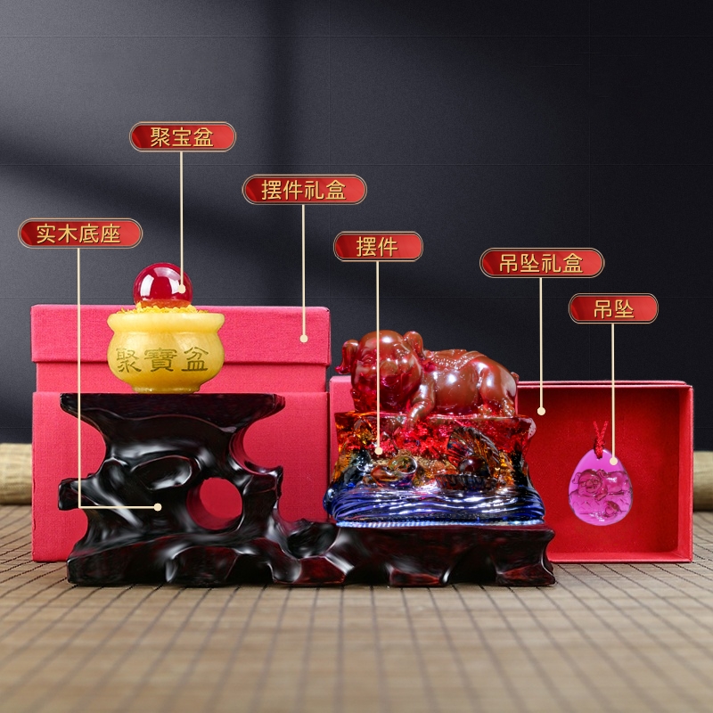 2026年宋韶光吉祥物生肖属猪珠联璧合琉璃摆件玄关办公室饰品挂件