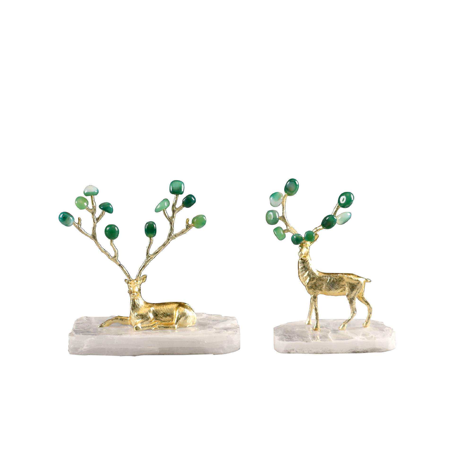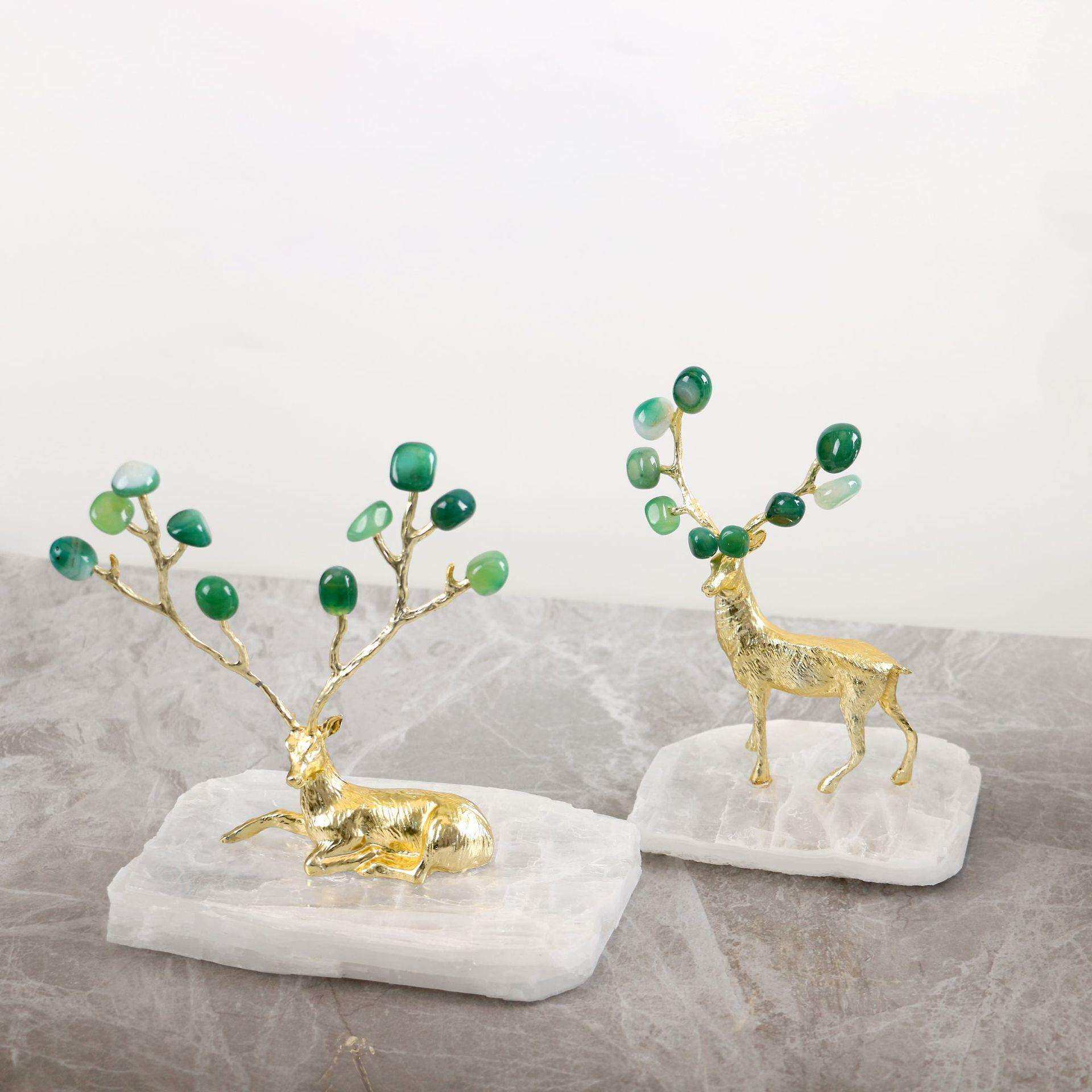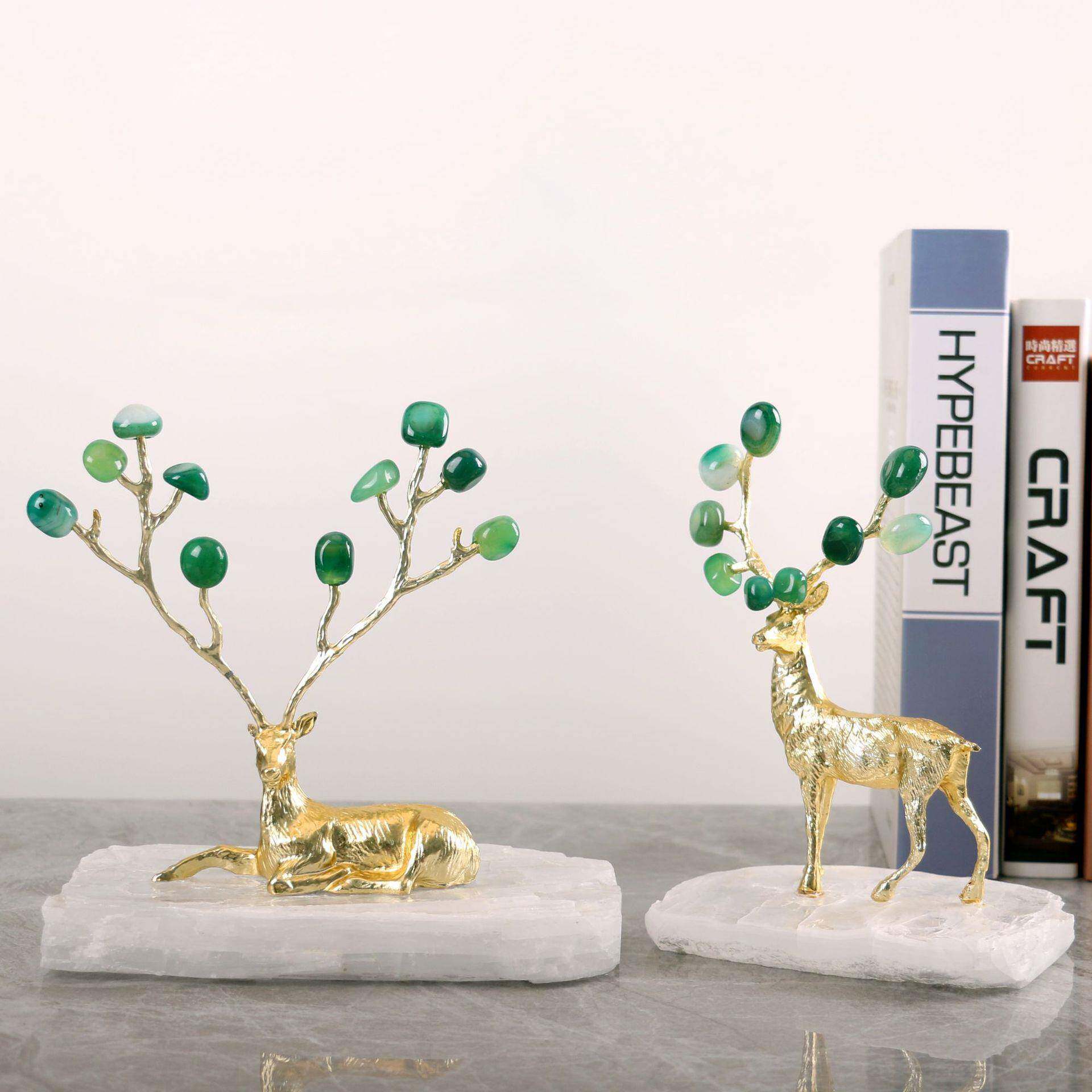现代轻奢石膏石底座绿色玛瑙鹿摆件客厅电视柜书房桌面家居装饰品