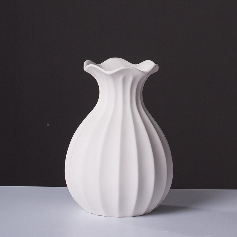 现代简约素烧白色陶瓷花瓶大号欧式创意插花干花器居家装饰品定制