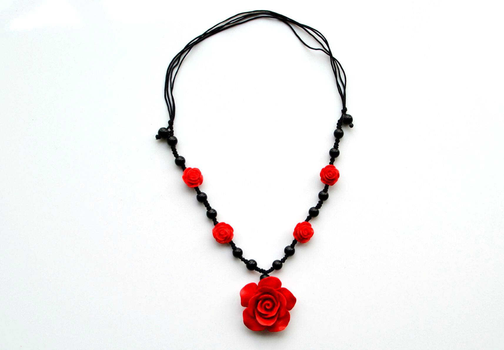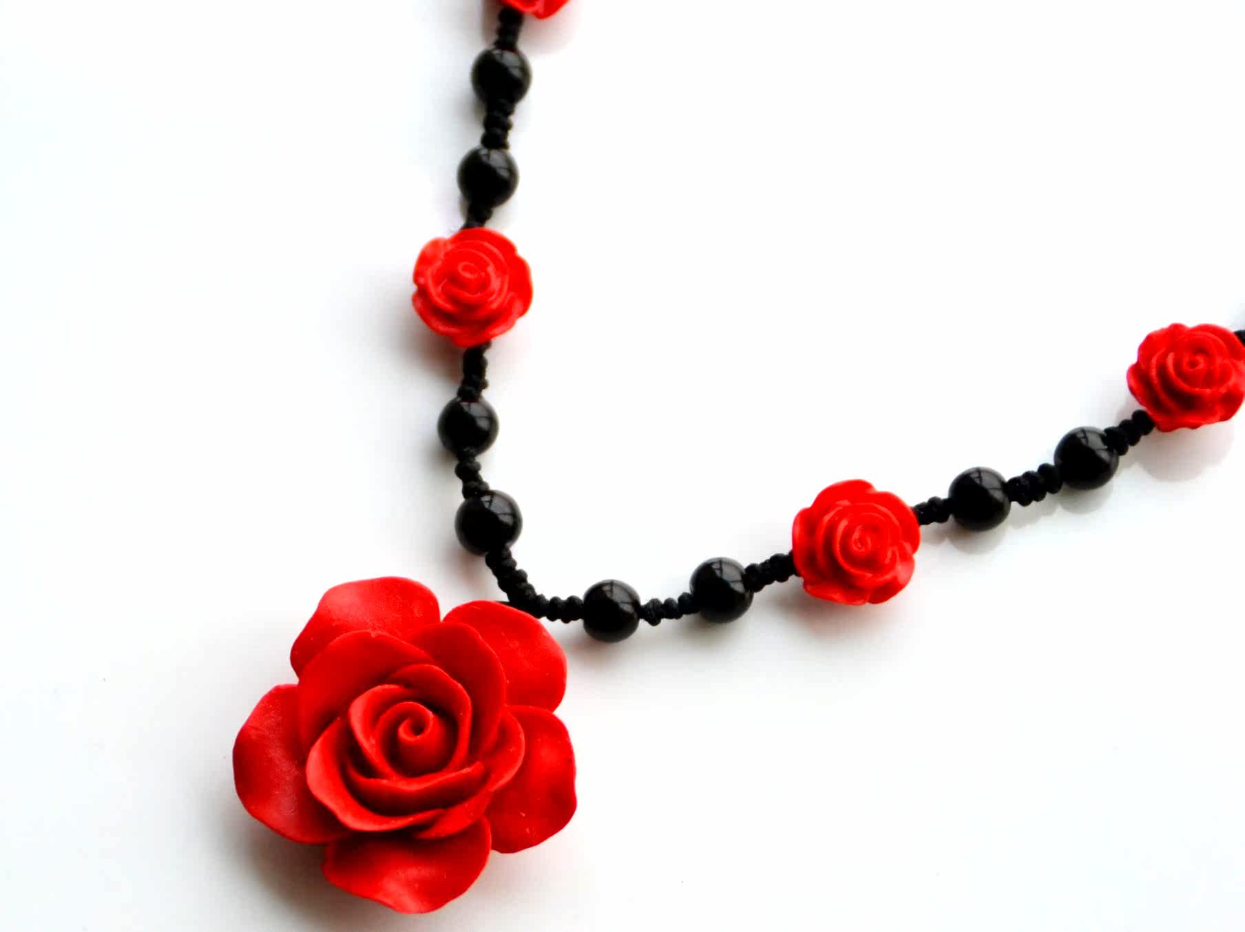 大红色朱砂漆雕饰品护身转运女款长项链毛衣链颈链颈绳立体玫瑰花