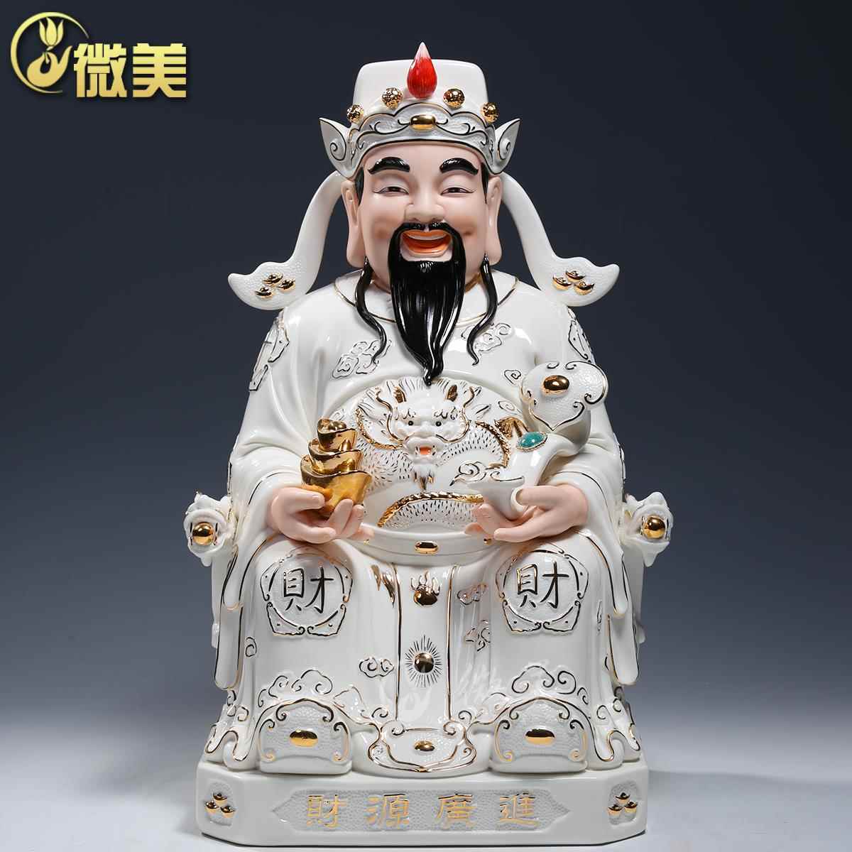 微美 陶瓷10至18寸坐龙椅财神爷佛像家用供奉红色神像招财摆件