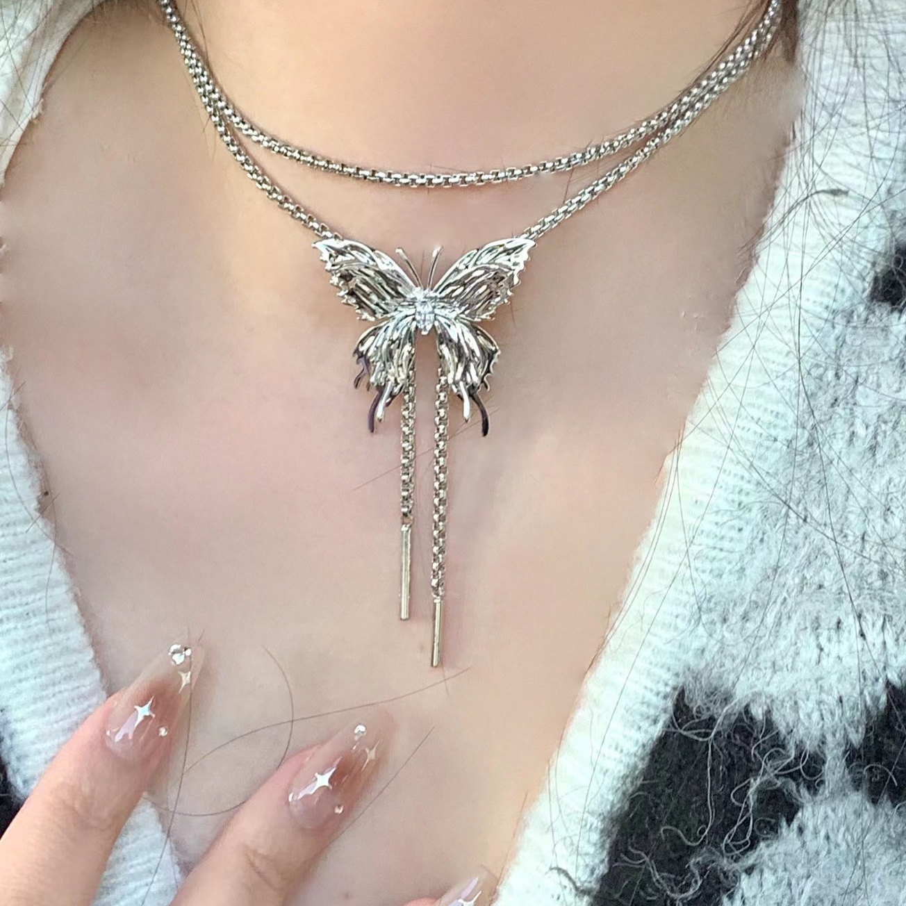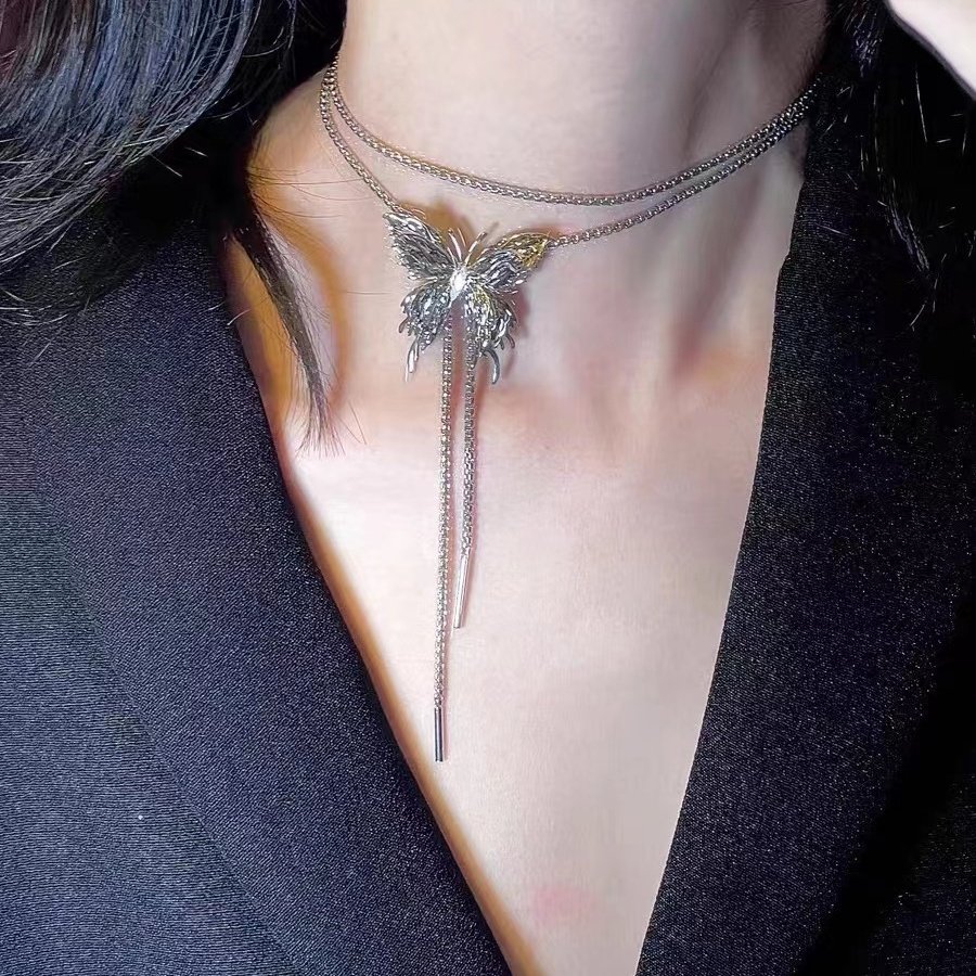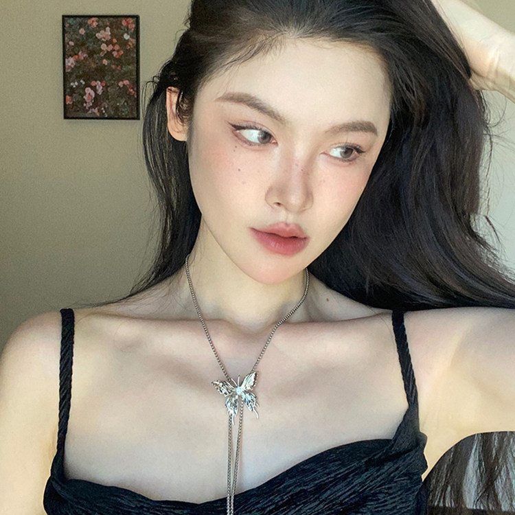 甜酷蝴蝶抽拉项链女款气质百搭高级锁骨链轻奢小众独特辣妹风配饰