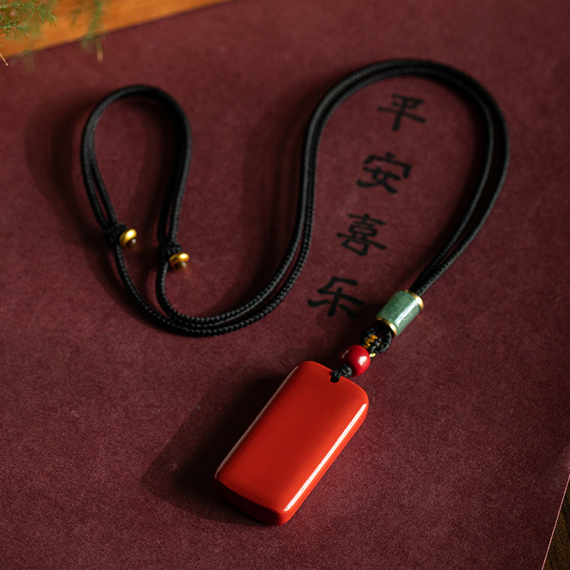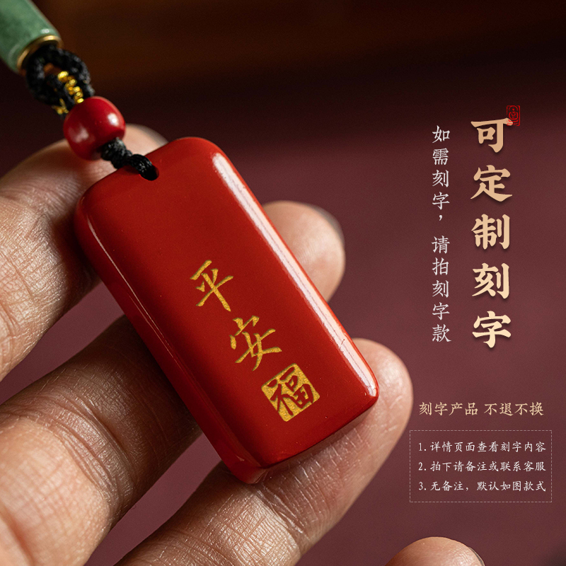 朱砂无事牌吊坠本命年平安挂脖项链定制刻字手工编绳项链男款护身