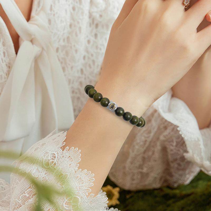 普陀山正品沉水级绿檀手串12生肖纯银本命佛佛珠本命年转运珠手链