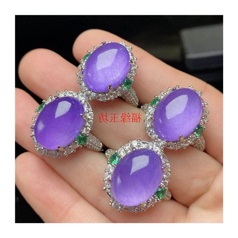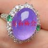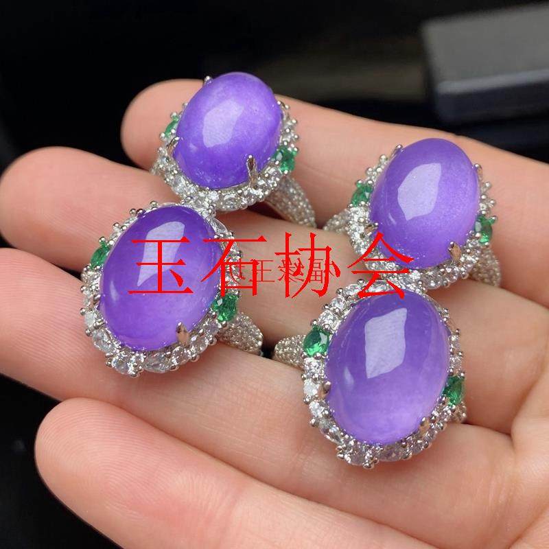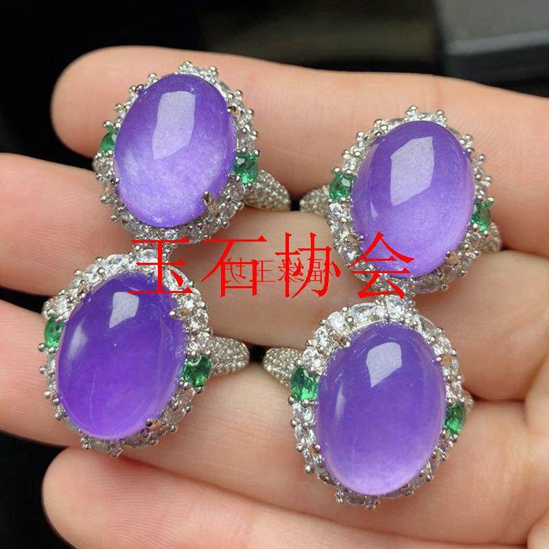 高端缅甸精品翡翠色冰种紫罗兰蛋面银饰镶嵌女款玉石戒指手饰品