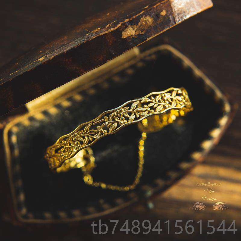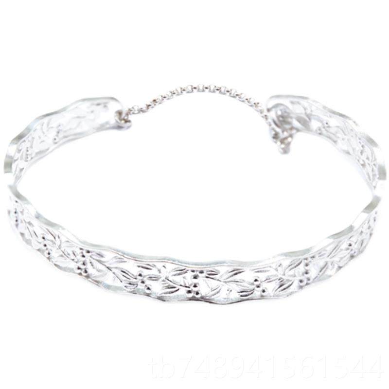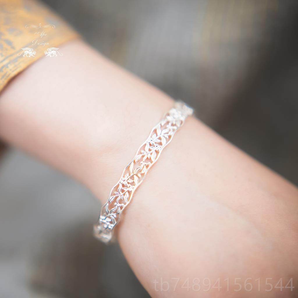 正品25银花纹空简约复古风开9口手镂镯金属狂潮百搭质手环 金银两