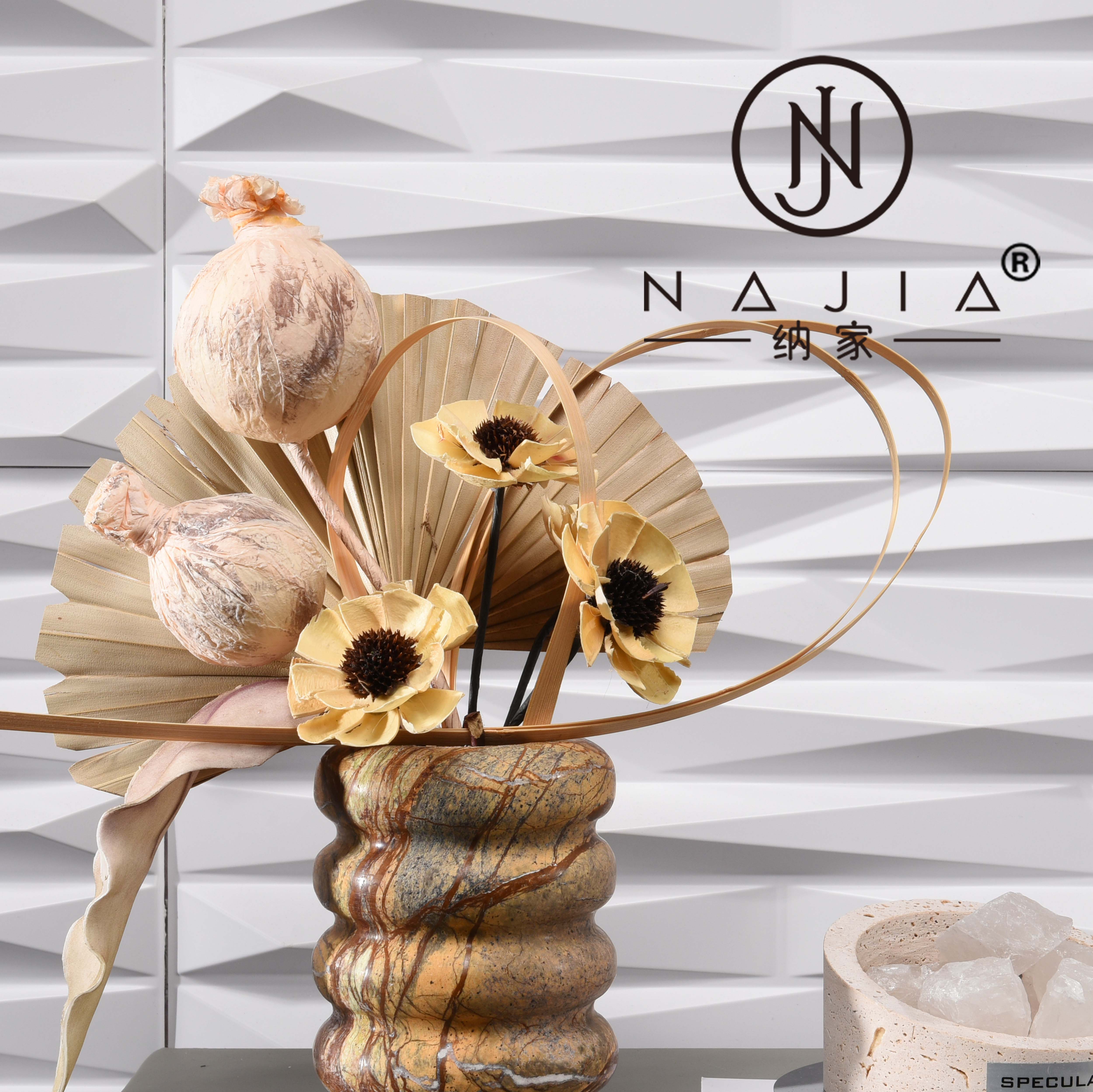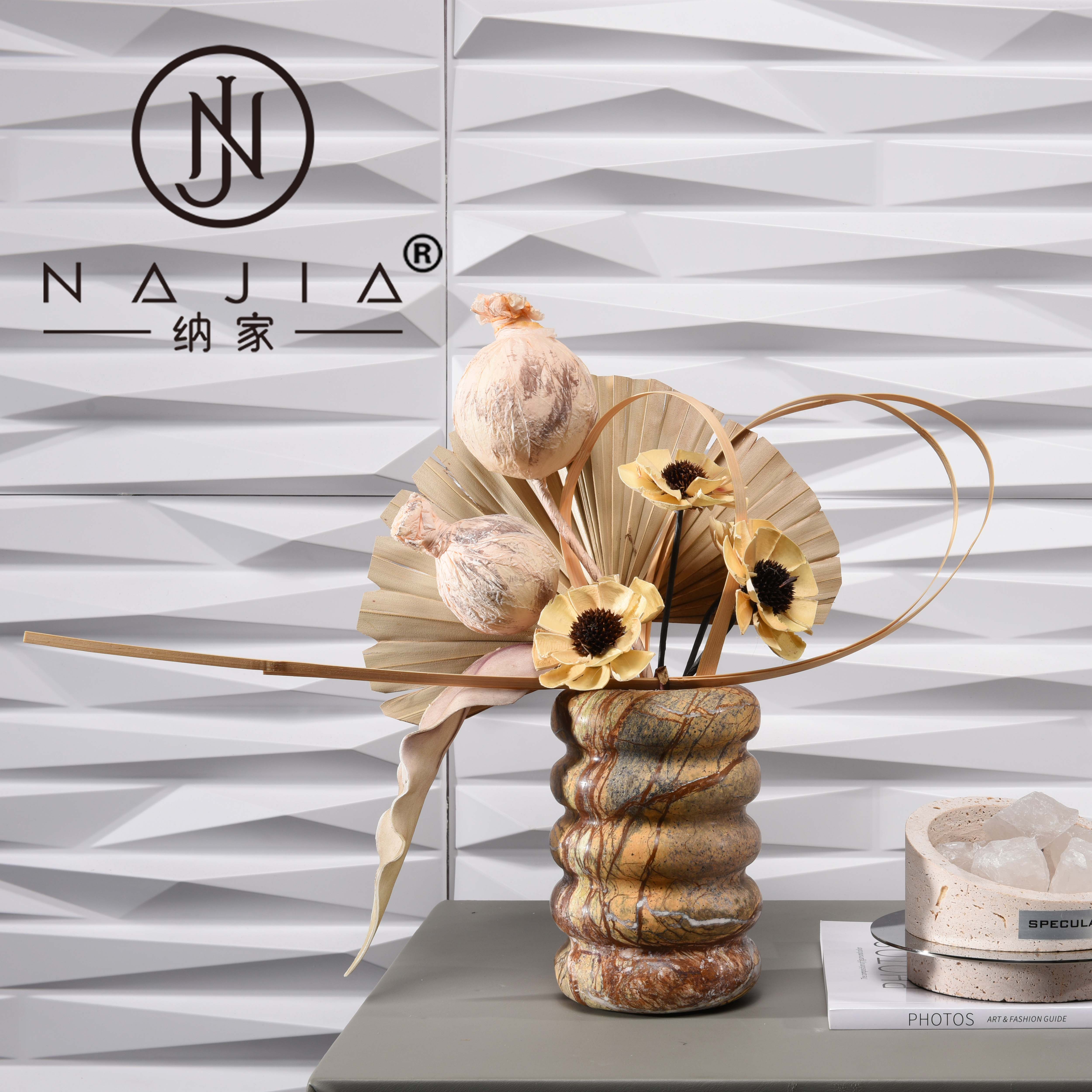 罗曼提 现代创意花艺镜缘黄洞石香薰摆件 样板间卧室床头柜售楼处