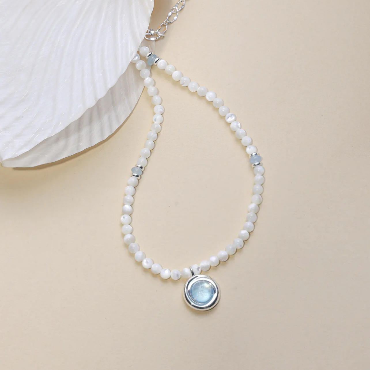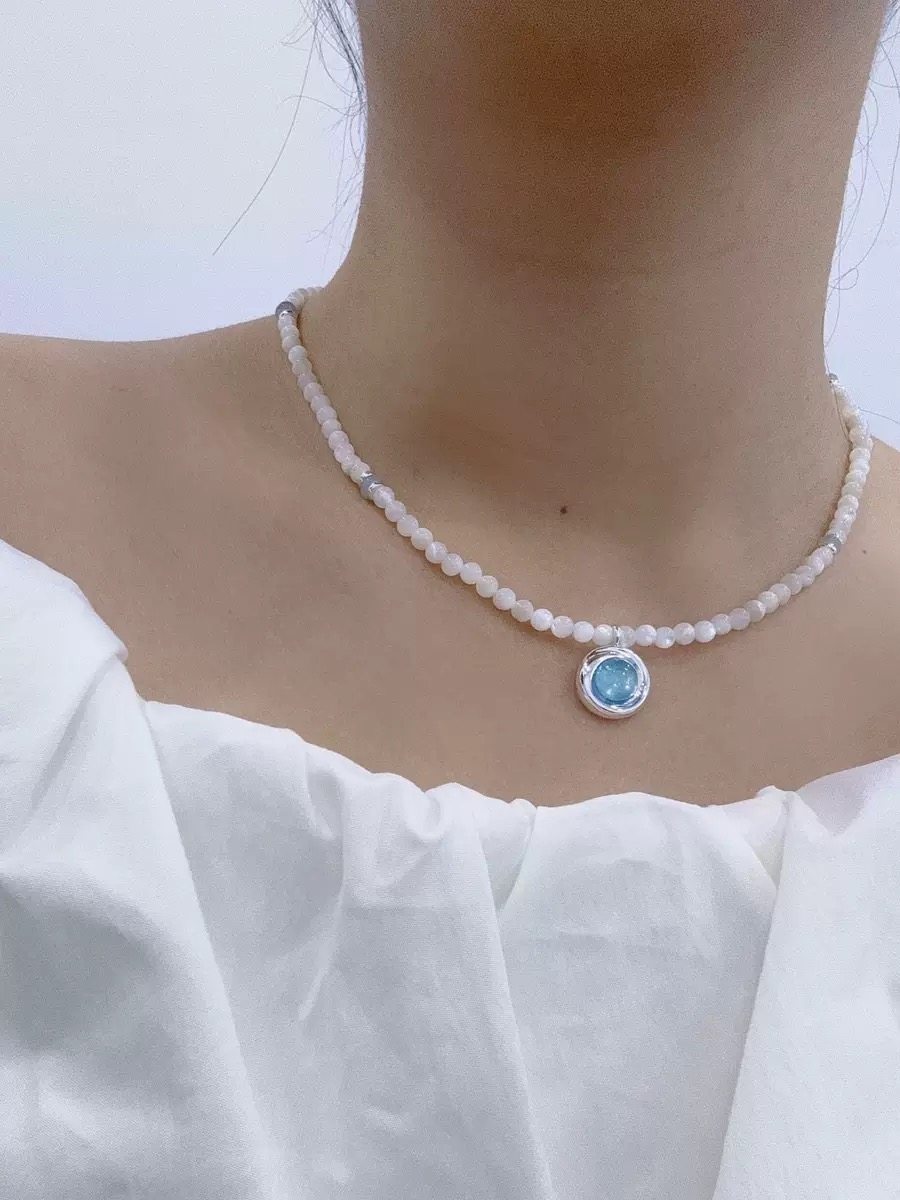 【新款】曦海冰蓝吊坠项链海蓝宝色人造玉髓锁骨链夏天高级感