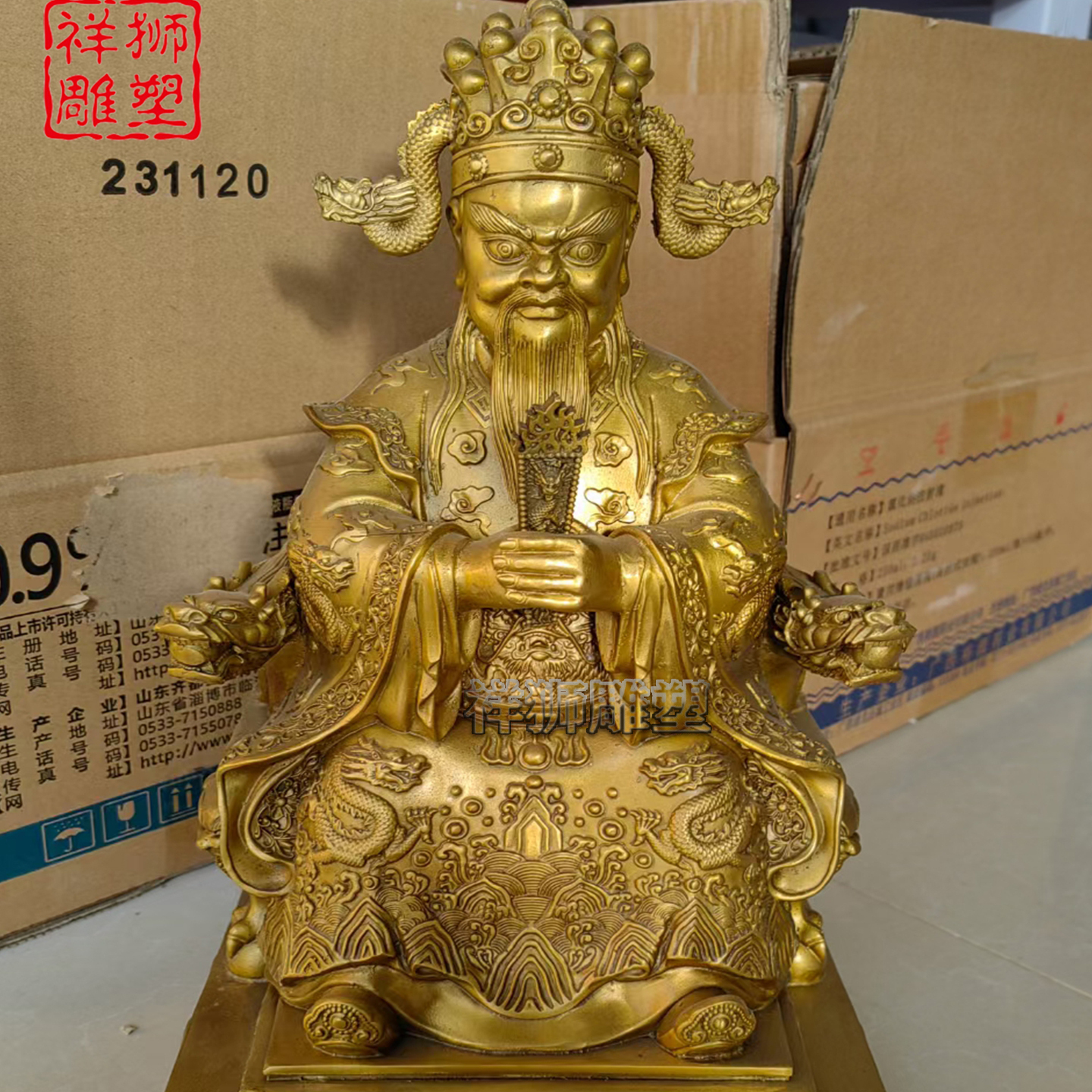 祥狮雕塑彩绘纯铜广济龙王神像佛堂供奉摆件五爷铜像定制厂家直供