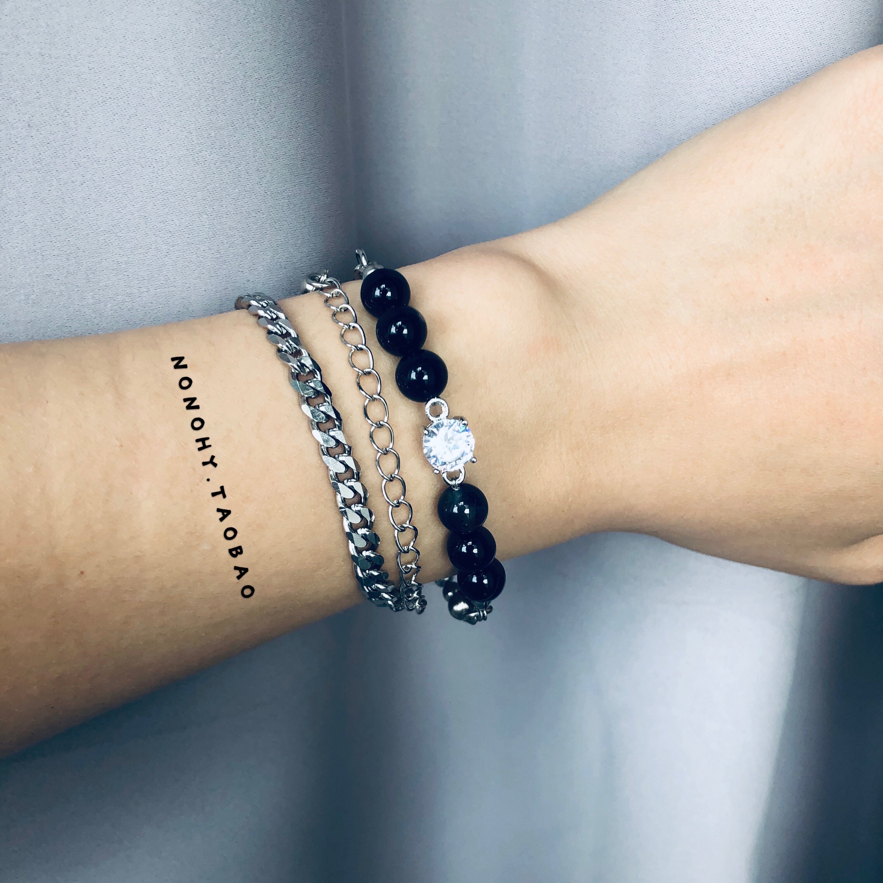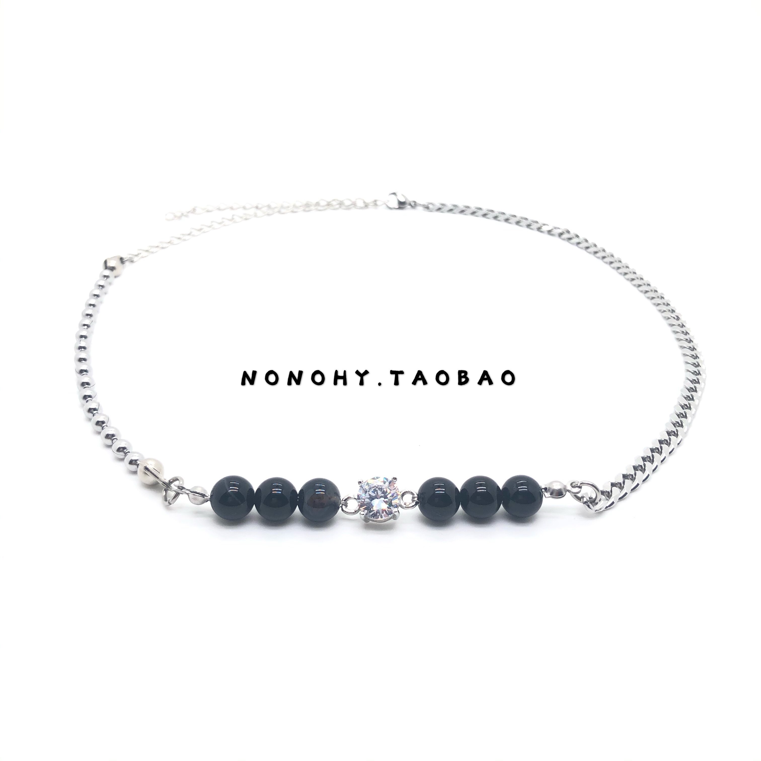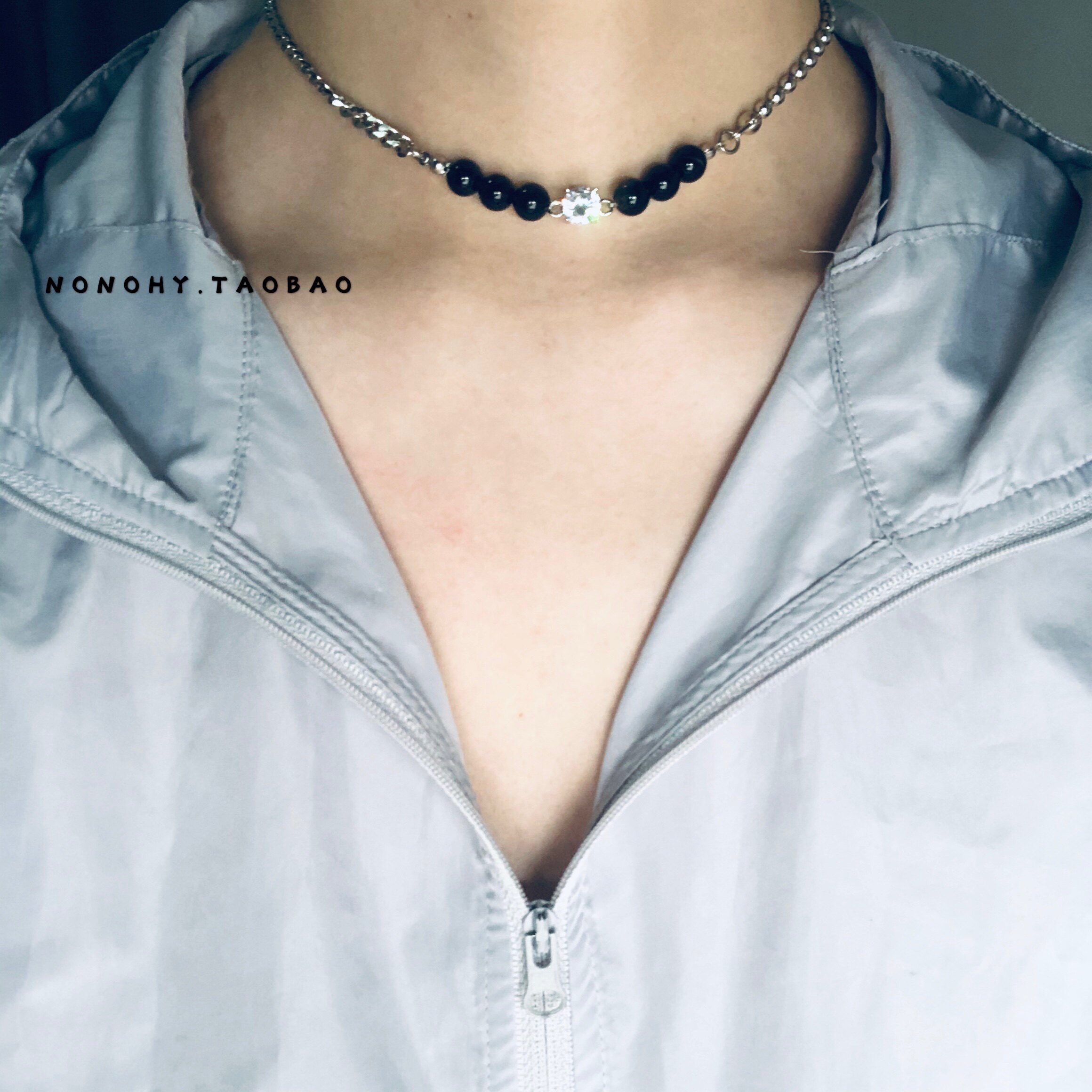 黄子韬个人秀场同款锆石玛瑙项链钛钢圆珠个性嘻哈风男女锁骨链子