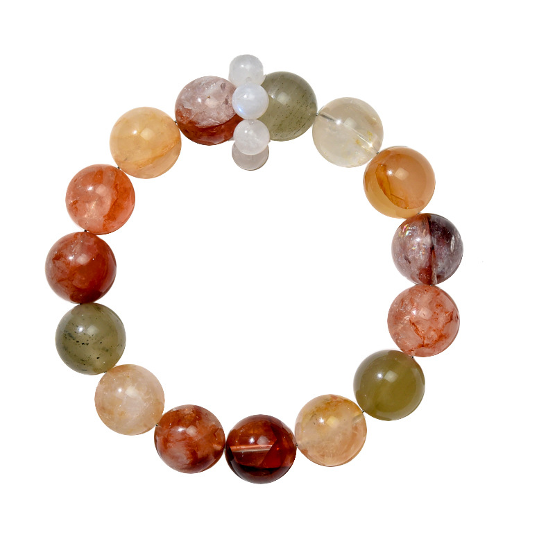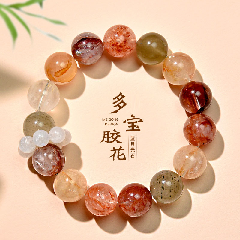 天然红胶花水晶串珠多宝手链女清新甜美黄胶花手串蓝月光跑环
