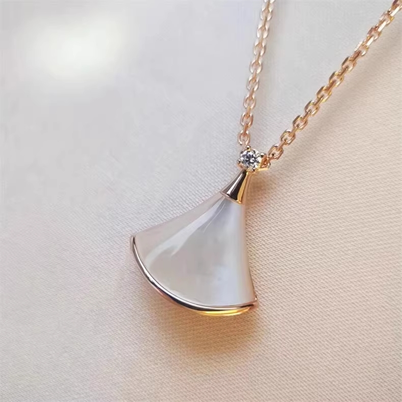 2025新款爆款扇形小裙子满钻项链女玫瑰金白贝母贝壳送情人节礼物