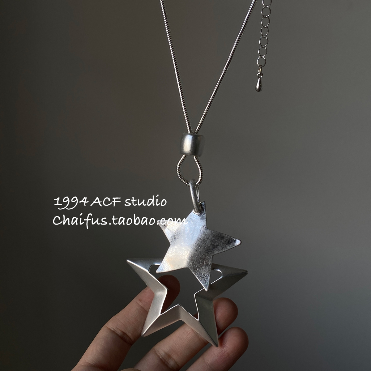 柴夫工作室/X131 欧美朋克风拉丝五角星项链复古科技感小众长链