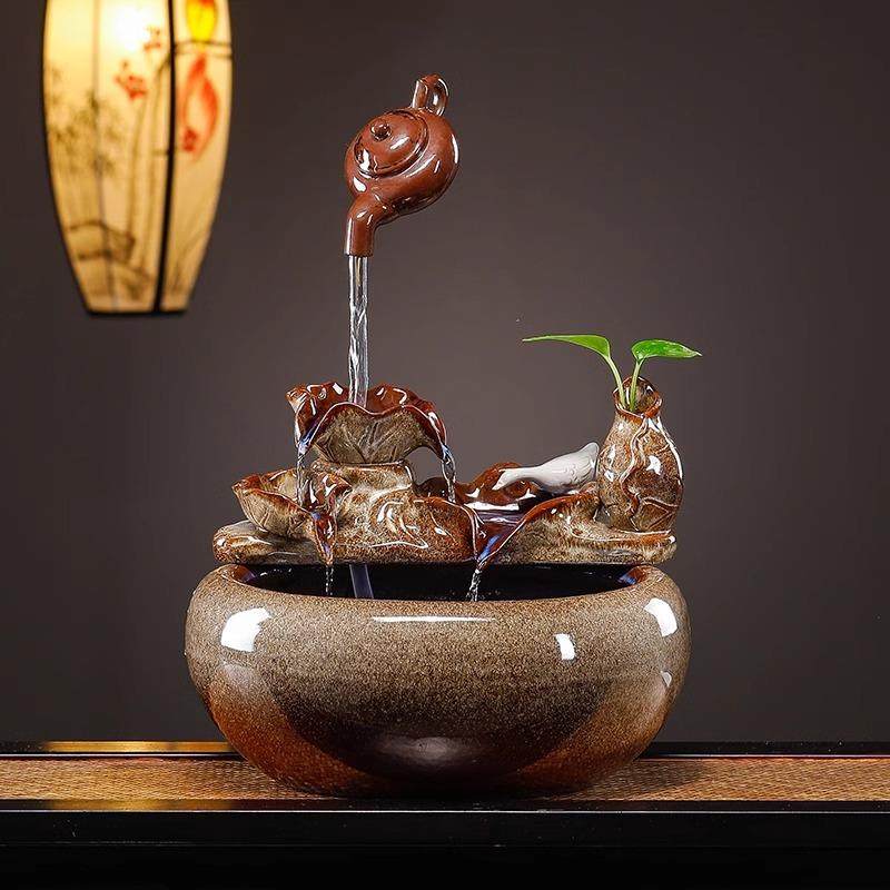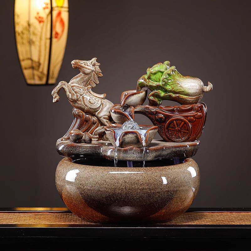 中式陶瓷招财循环流水摆件客厅创意喷泉瀑布水景鱼缸乔迁开 业送