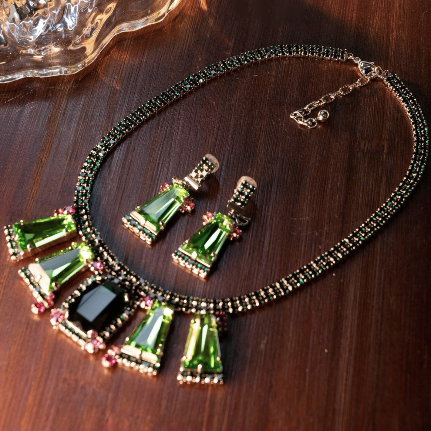 中古风复古宫廷风重工设计仿宝石琉璃项链锁骨链绿色