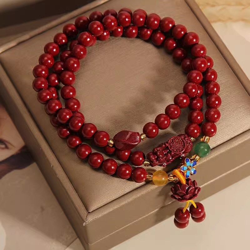 朱砂三圈手链项链女招财貔貅手串弹力红色古民族风长款个性