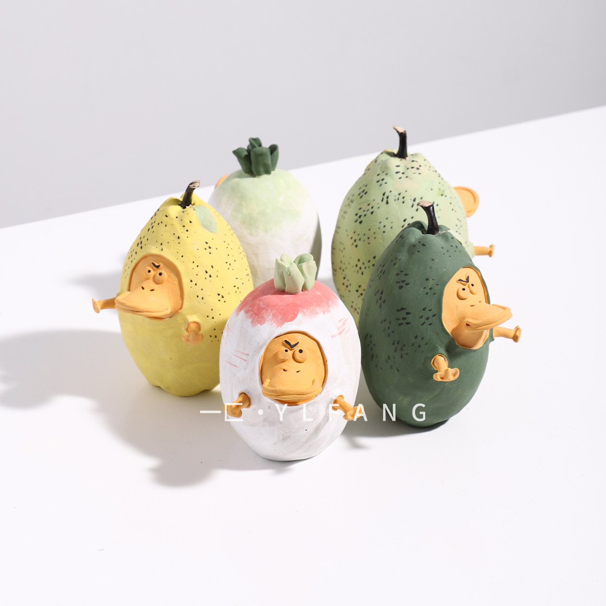 一匚 现代原创鸭梨陶瓷动物摆件 样板间儿童房客厅卧室装饰摆件