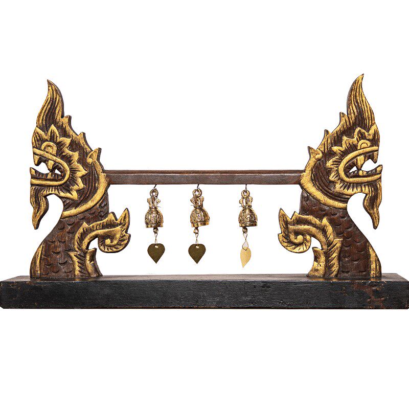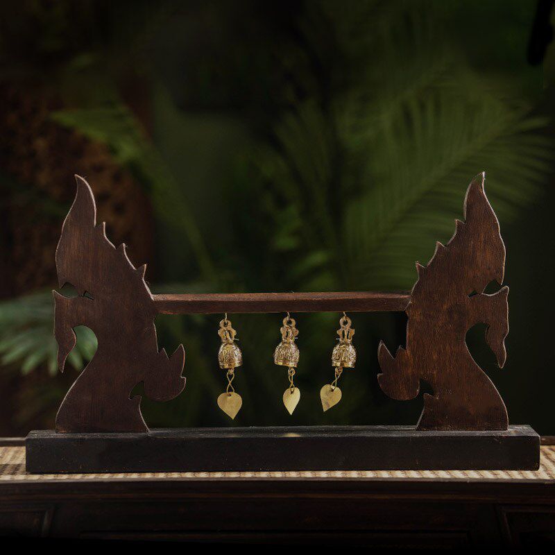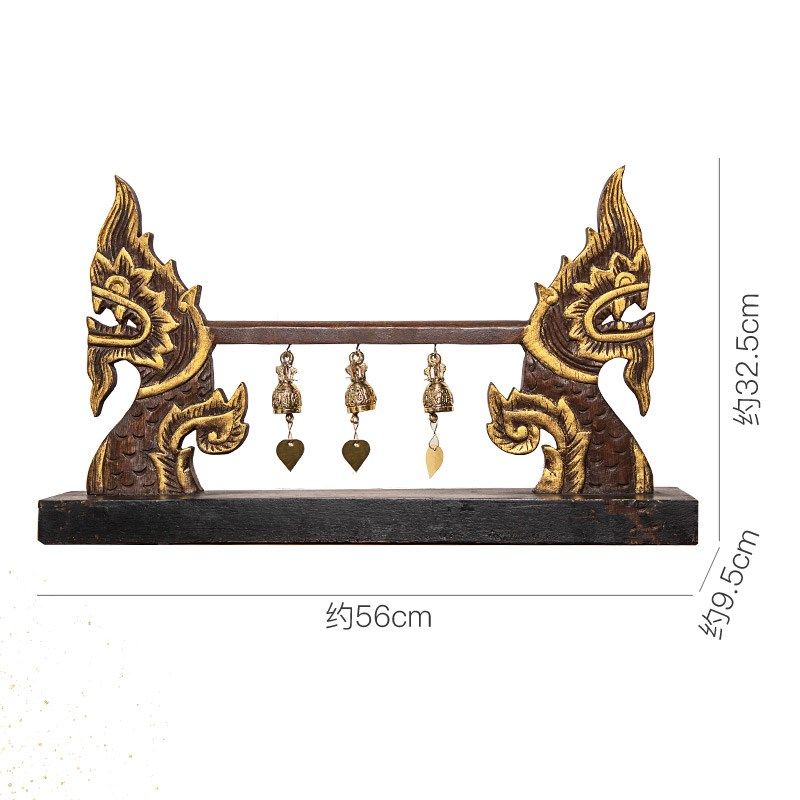 异丽泰国木质创意铜铃摆件实木雕刻东南亚客厅会所装饰工艺品摆件