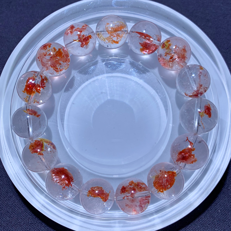 天然锦鲤胶花水晶单圈手链原色红幽灵水晶矿种一物一图饰品礼物女