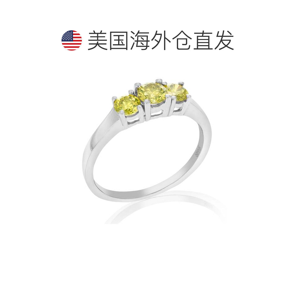 自营 vir jewels1 克拉 3 石圆形黄色钻石订婚戒指 14K 白金新娘