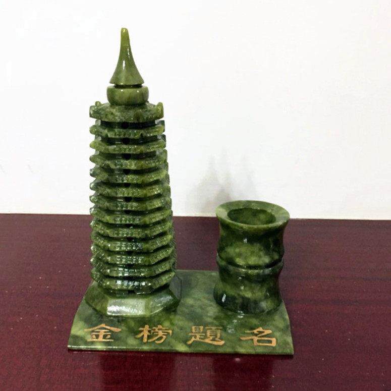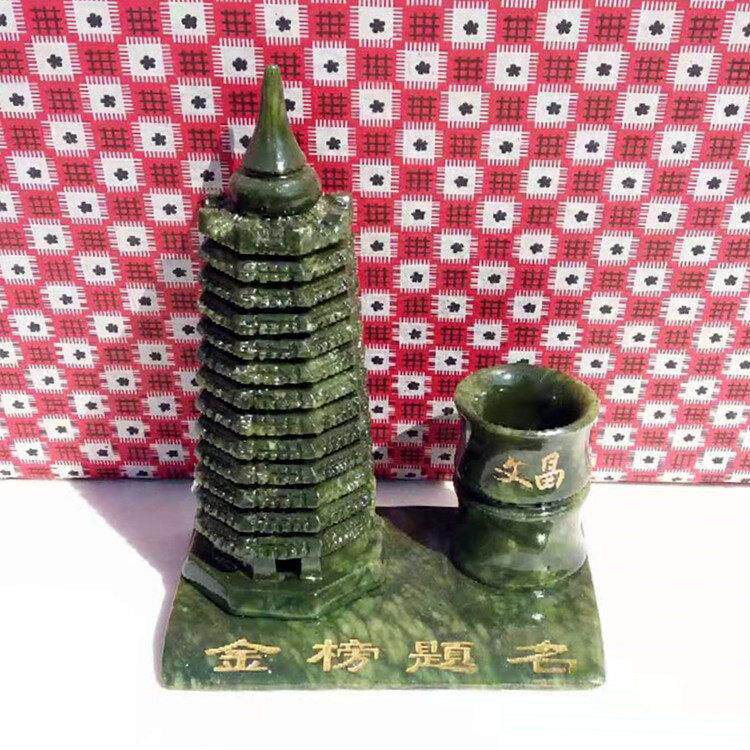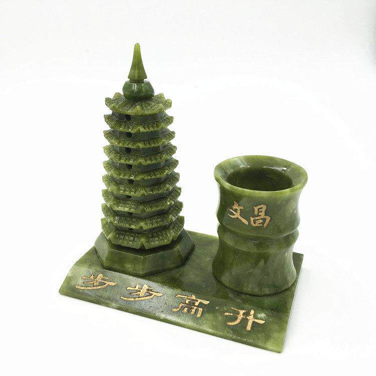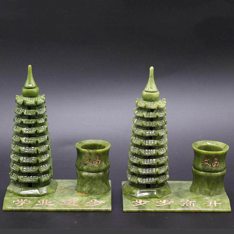 文昌塔摆件九9层13十三层房间书房办公室书桌书柜绿色南玉石笔筒