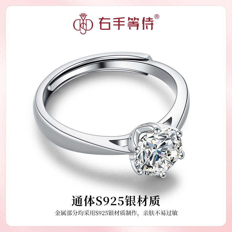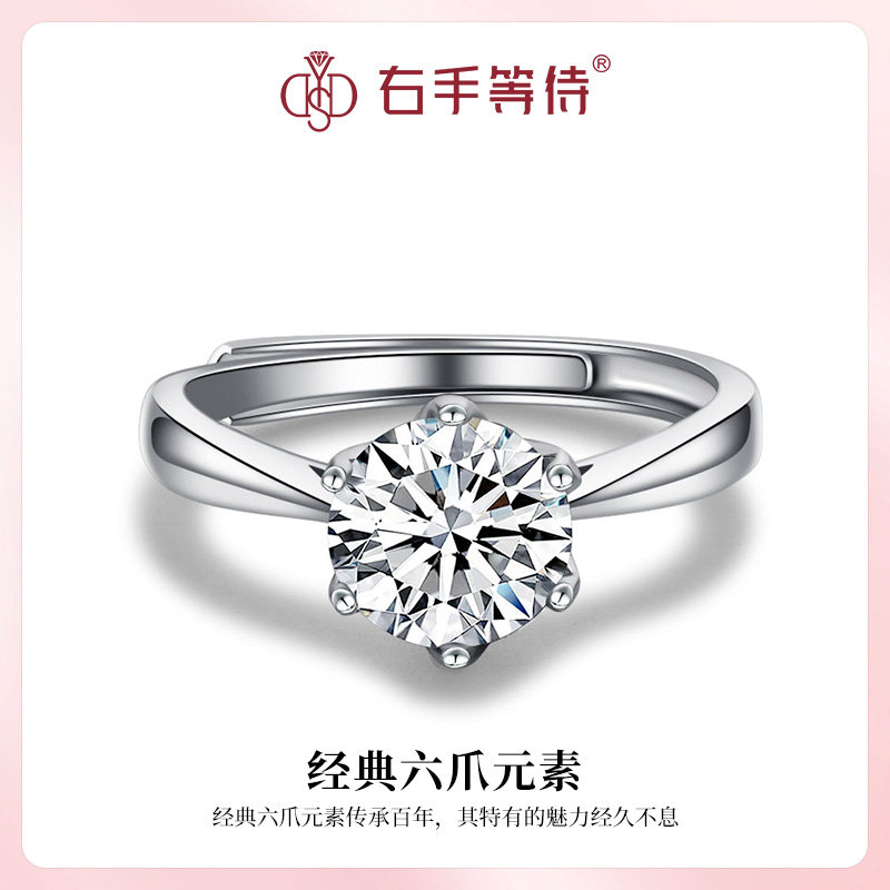 右手等待经典六爪莫桑钻戒指S925纯银戒指开口可调节戒指女送老婆