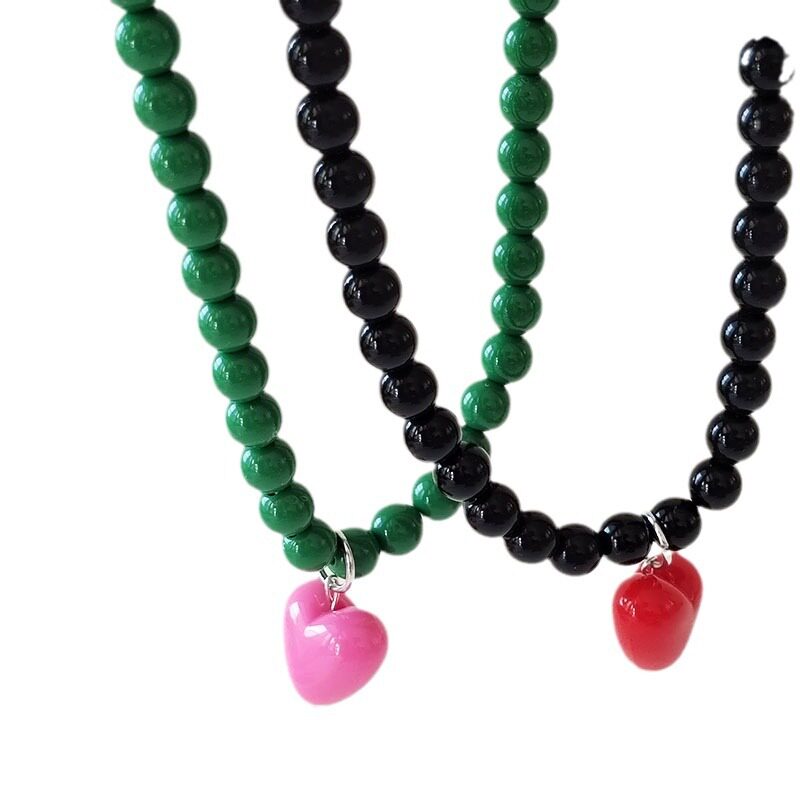 复古本命年安哥拉红色串珠项链小众爱心吊坠高级感锁骨颈链配饰女