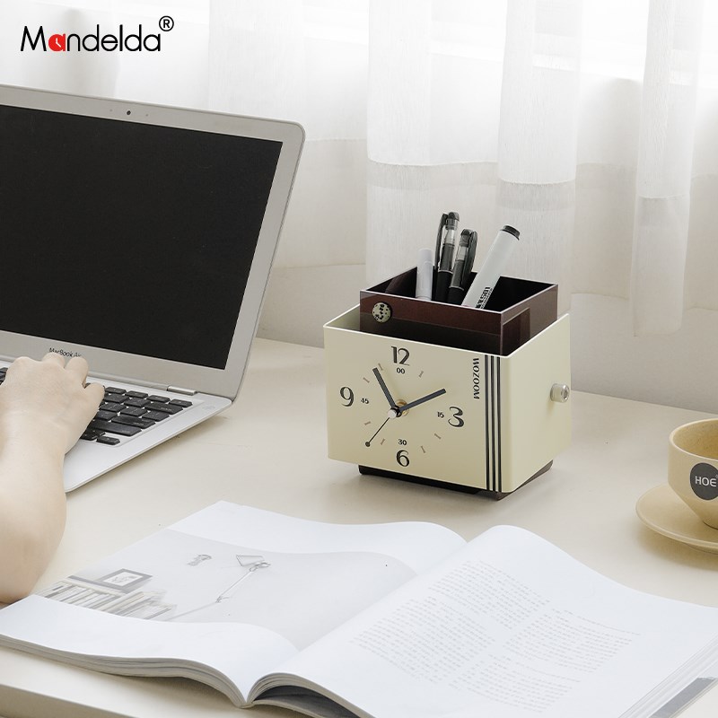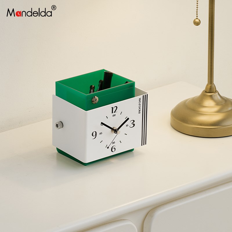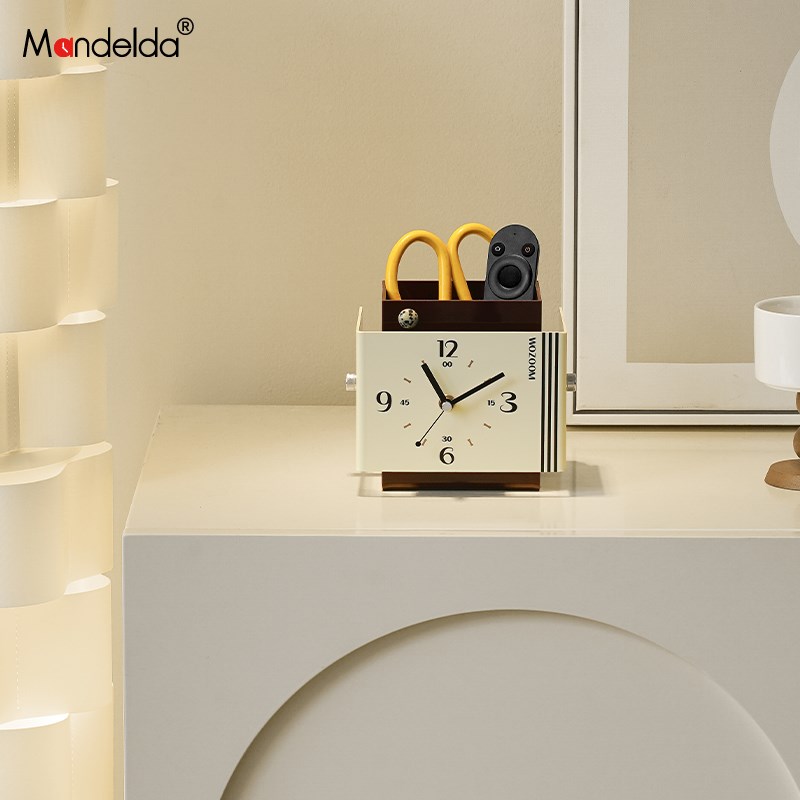 Mandeclda入户玄关摆件客厅桌面座钟办公桌创意储物时钟装饰品