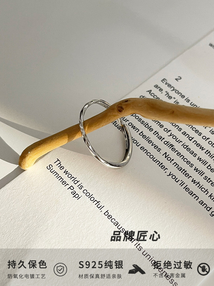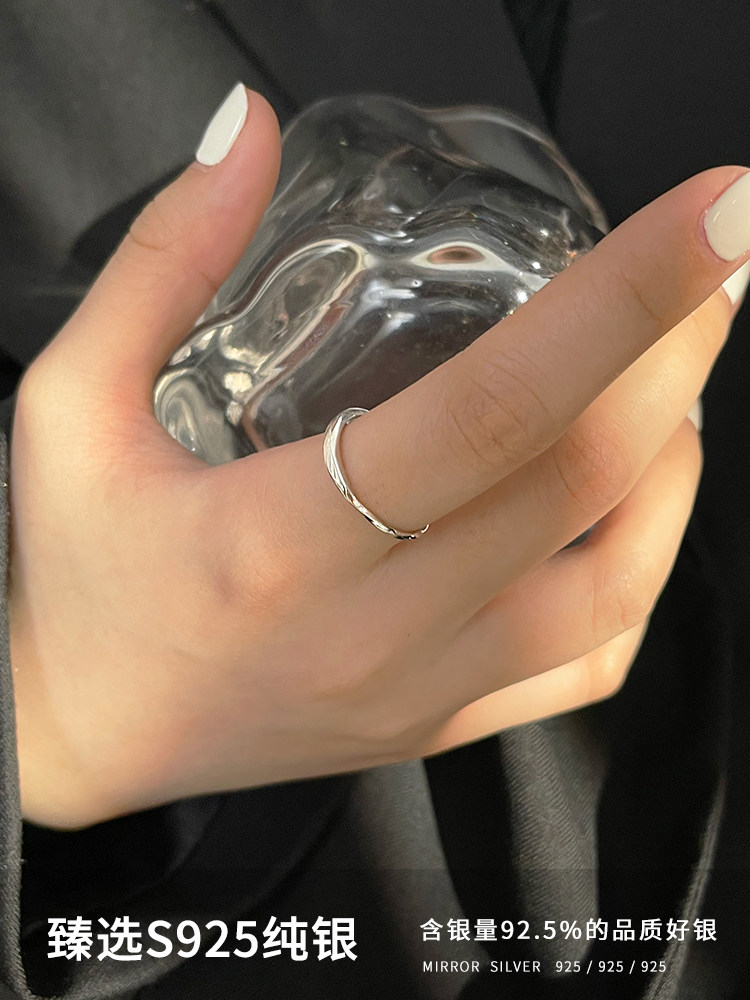 925纯银简约波浪细款戒指女款尾戒关节戒小众设计指环学生