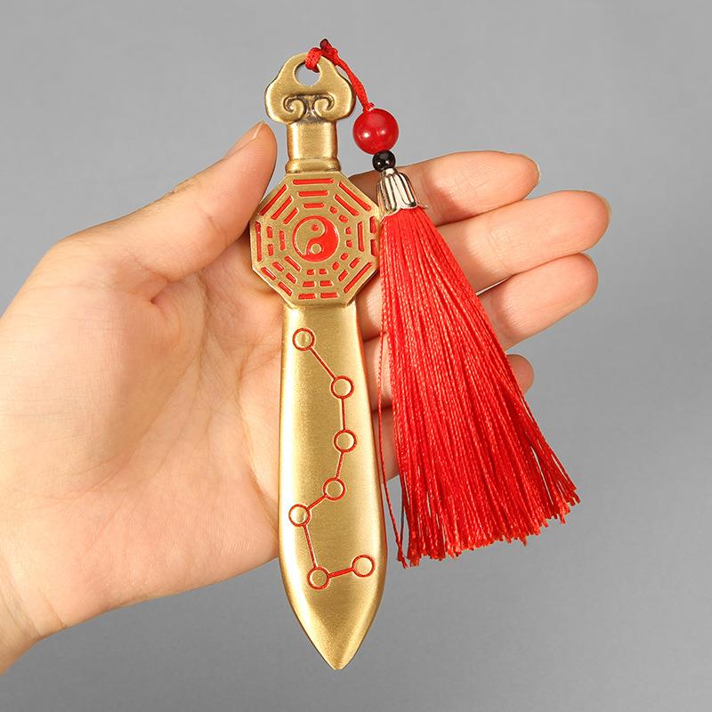 黄铜七星宝剑挂件八卦紫薇讳山鬼花钱手把件护身符家居桌面摆件