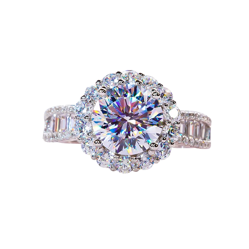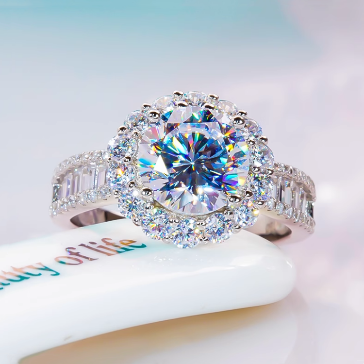 18K白金莫桑石微镶大圆钻满钻3克拉戒指纯银豪华圆包钻戒时尚大气