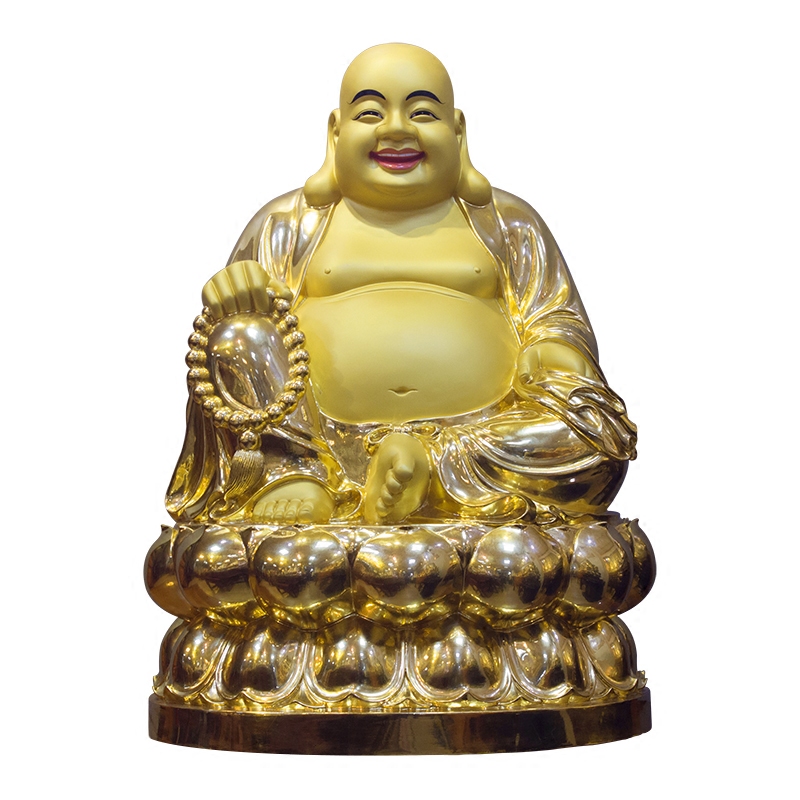 圆通佛具全铜弥勒佛佛像手工贴真金莲花座大肚笑佛摆件布袋弥勒佛