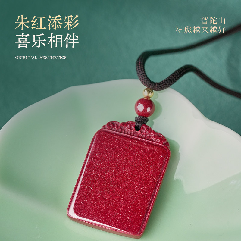 普陀山朱砂吊坠平安无事牌项链男女款本命年挂件礼物送妈妈