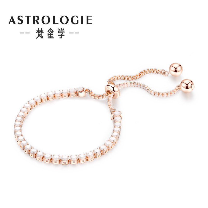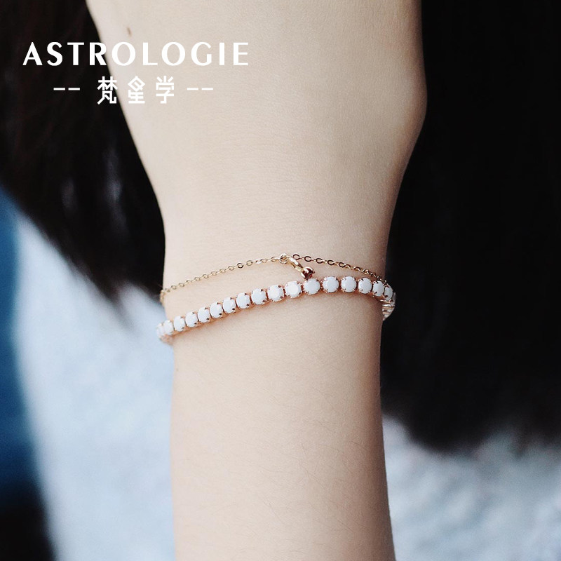 白色心愿手链女925纯银镀14K玫瑰金简约气质白陶瓷手饰品小众设计