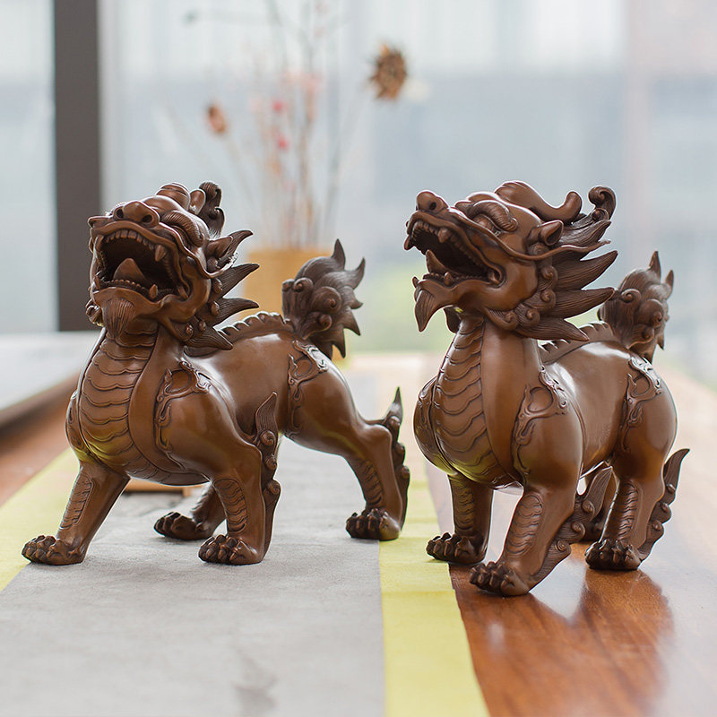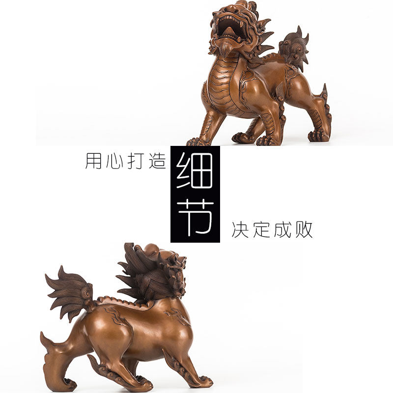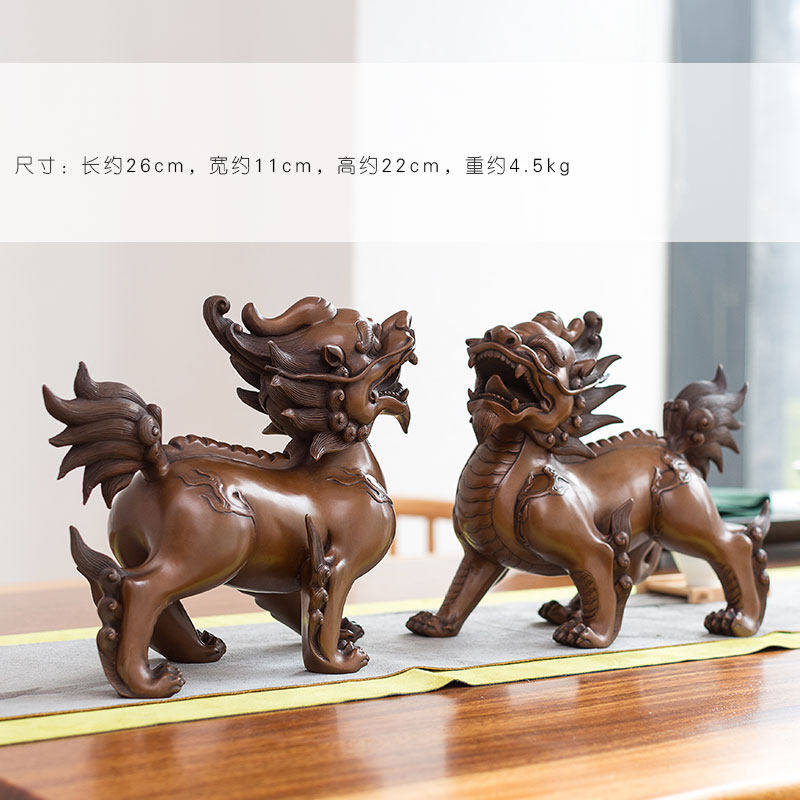 紫铜麒麟摆件一对办公室客厅貔貅工艺品家居饰品摆设店铺开业礼品