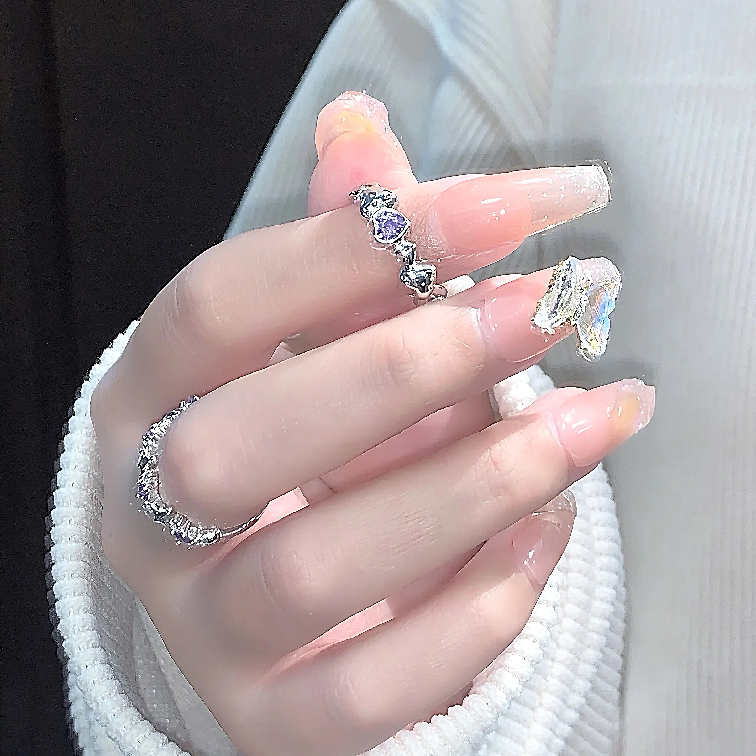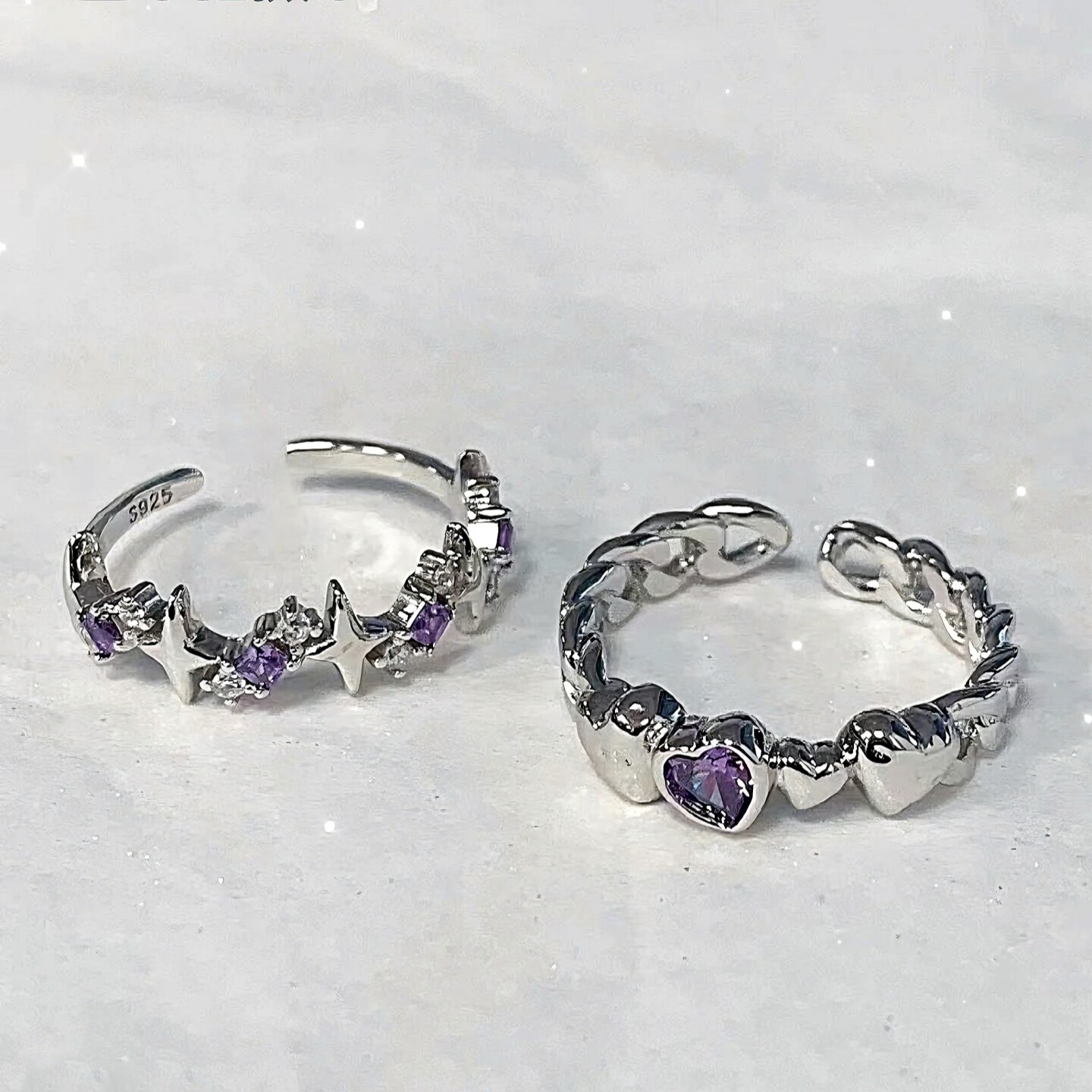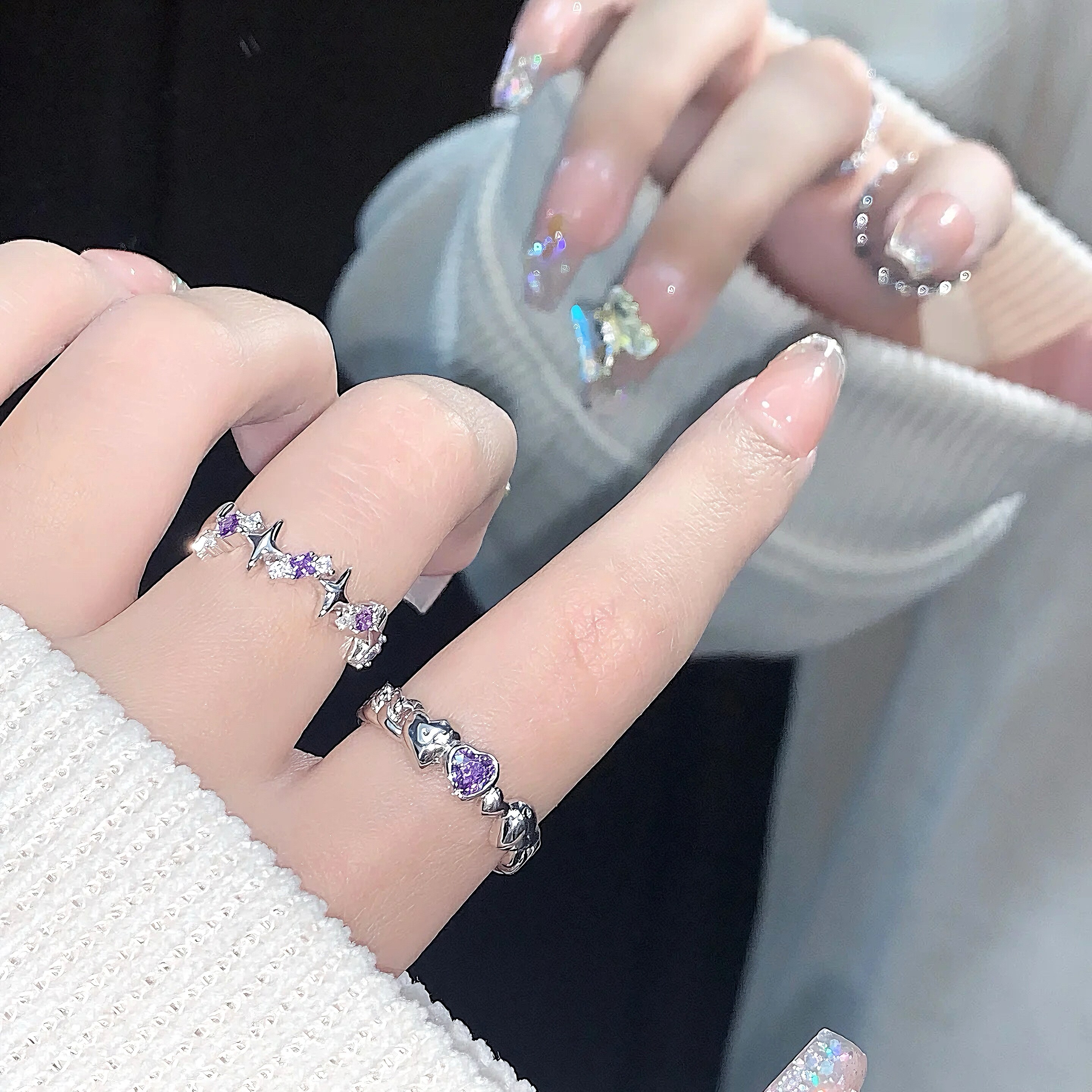 紫钻爱心戒指小众ins温柔对接闺蜜二人开口可调节指环食指戒简约
