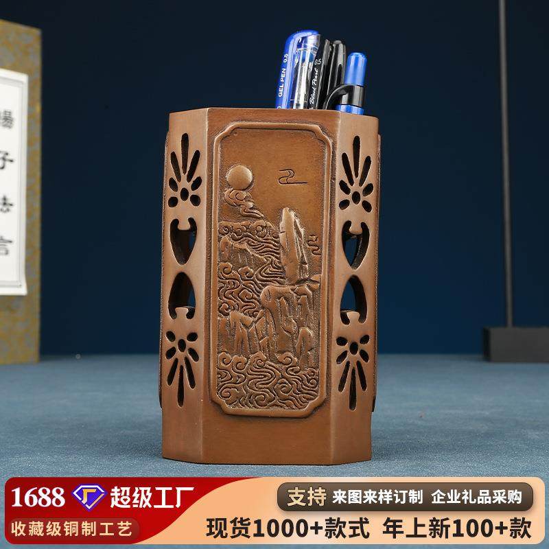 【黄山四绝】师铜筒办公桌创意笔72020黄紫筒摆件工艺笔品教节礼
