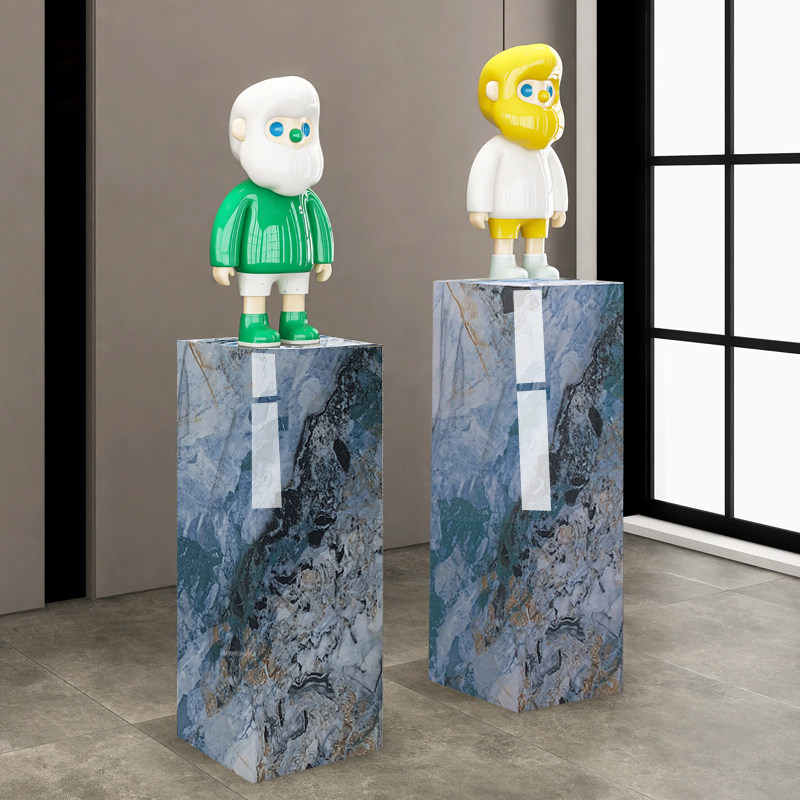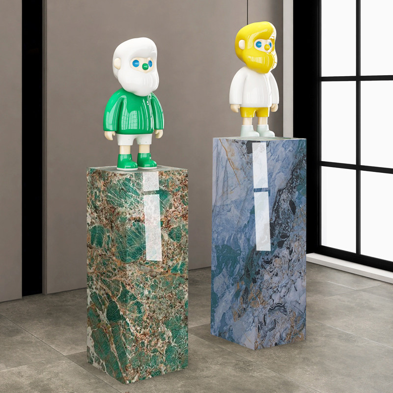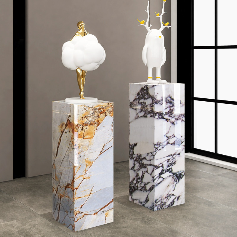 高端大理石岩板立柱雕塑轻奢落地增高客厅玄关酒店装饰摆件底座