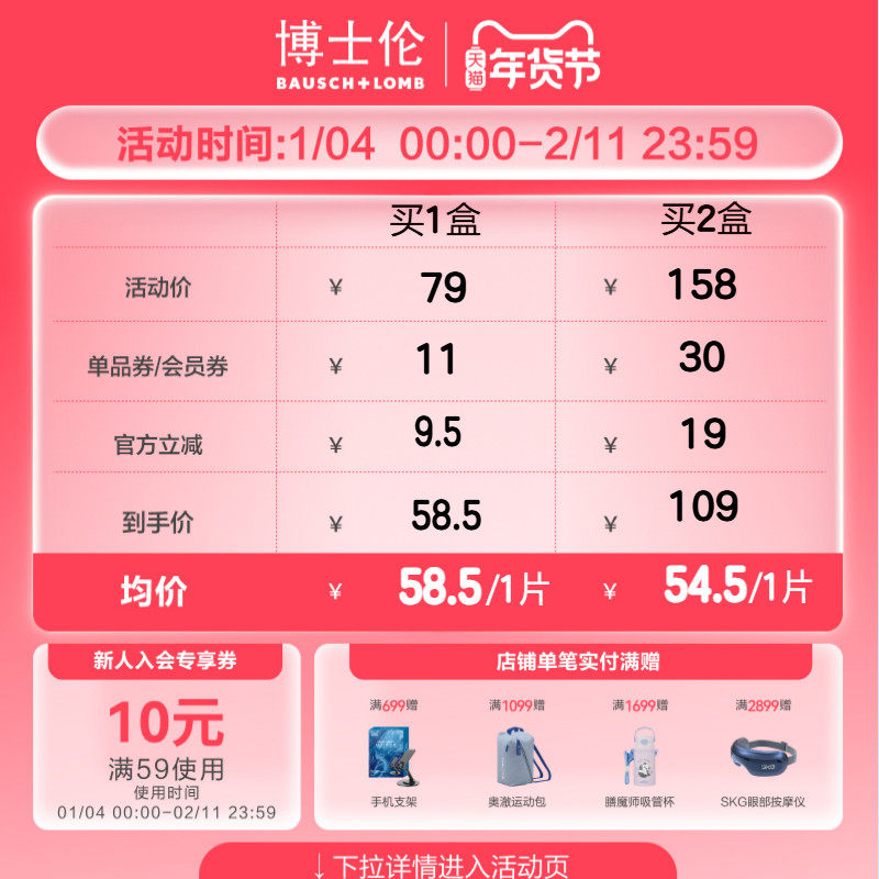 【体验装】博士伦官方旗舰店ULTRA奥澈硅水凝胶月抛1片隐形眼镜