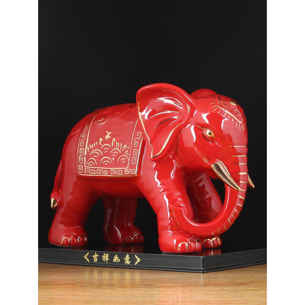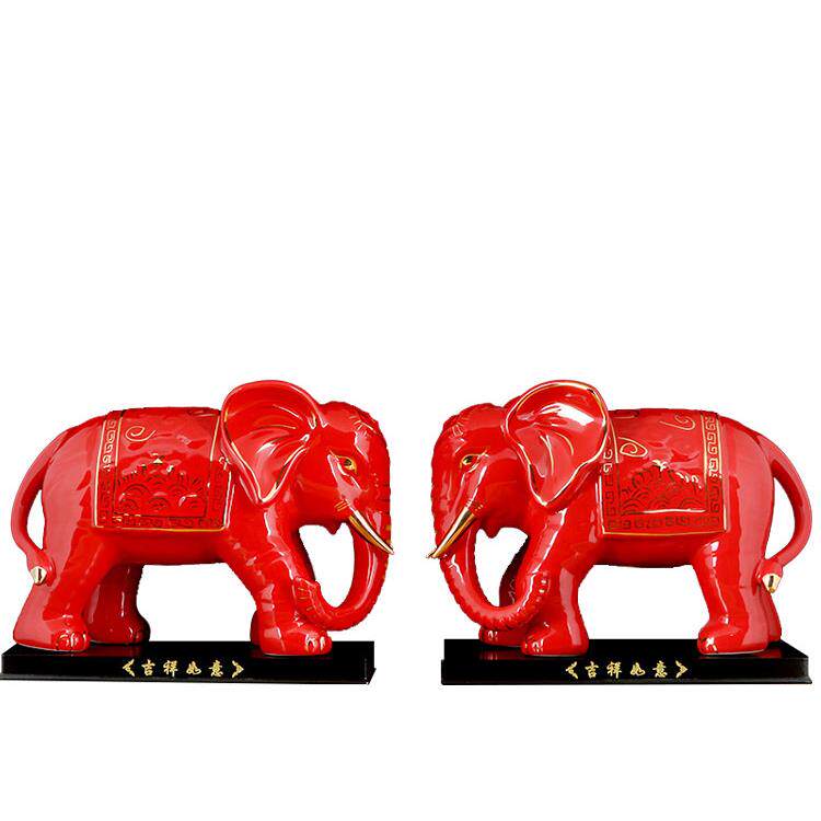 红色陶瓷吸水大象摆件一对瓷器象摆设品客厅玄关招财镇宅吸财大象