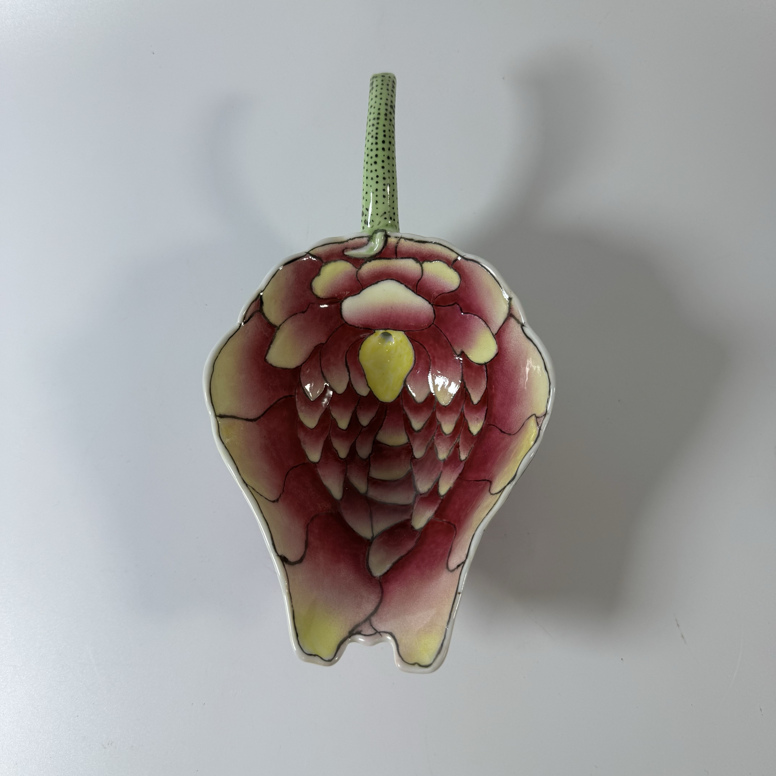清光绪款手绘加彩莲花纹秋操杯荷叶铲客厅古中式装饰品家居摆件