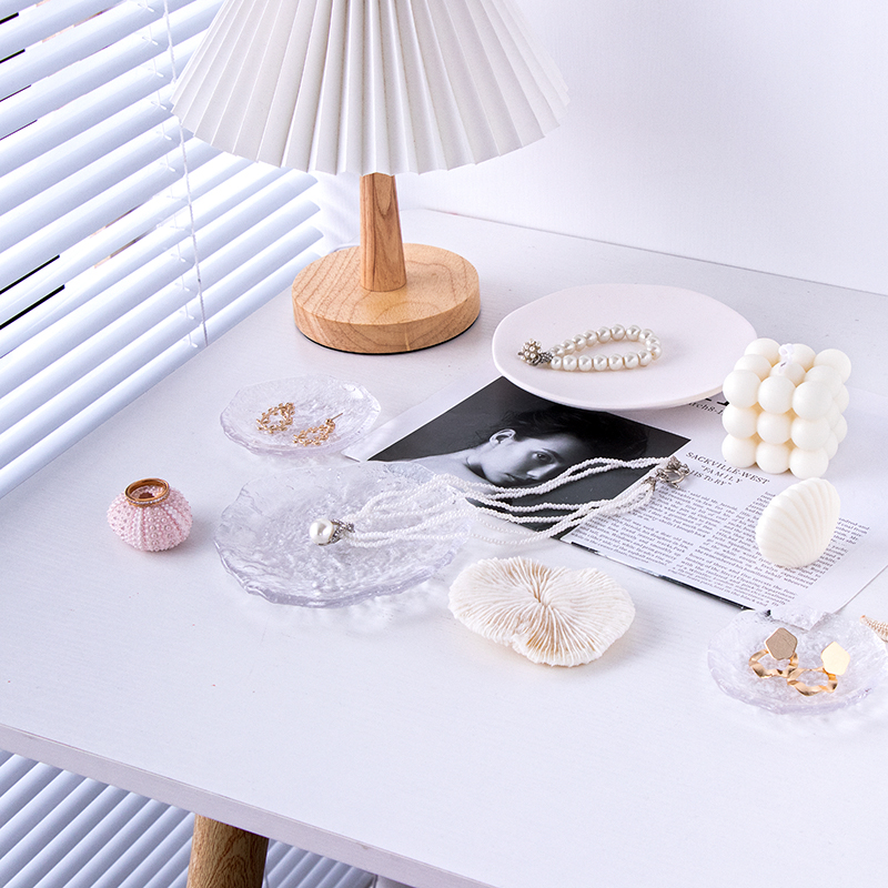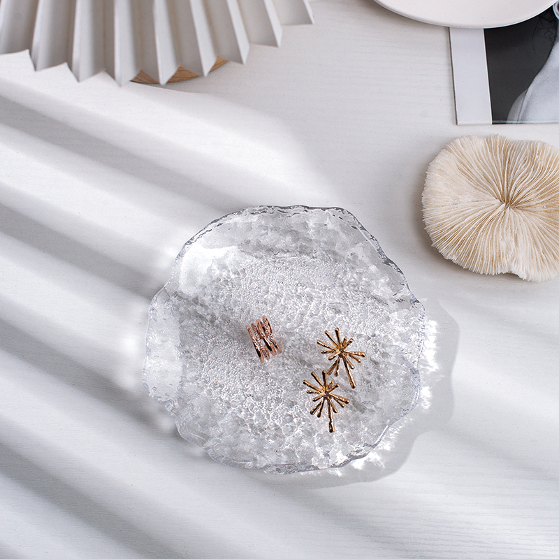 透明不规则异形玻璃盘子饰品拍照道具摆件ins水波纹收纳盘装饰