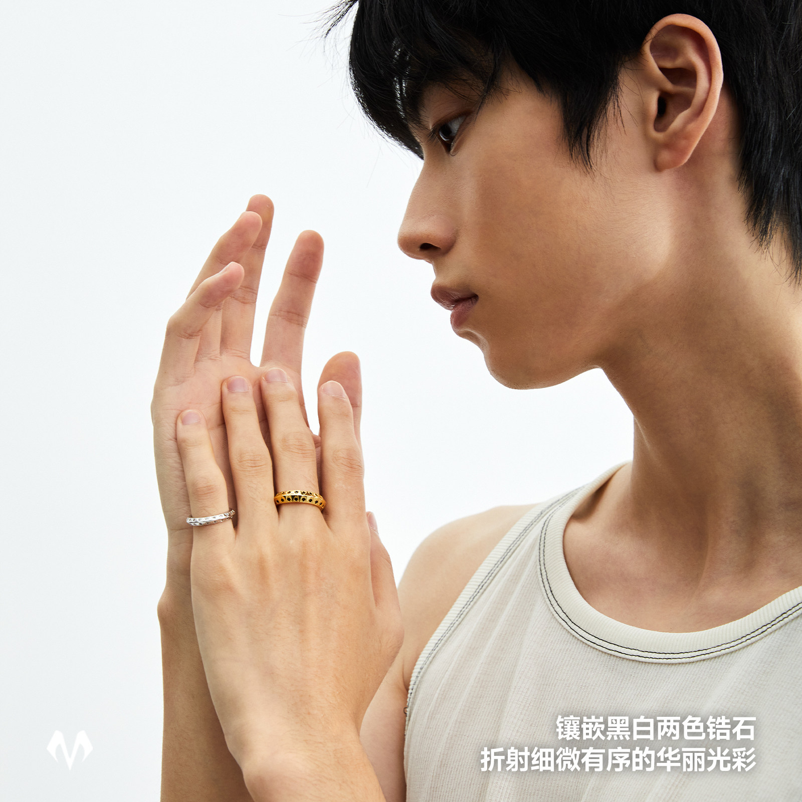babama好事系列三角光环男士戒指小众设计情侣对戒圣诞礼物送男友