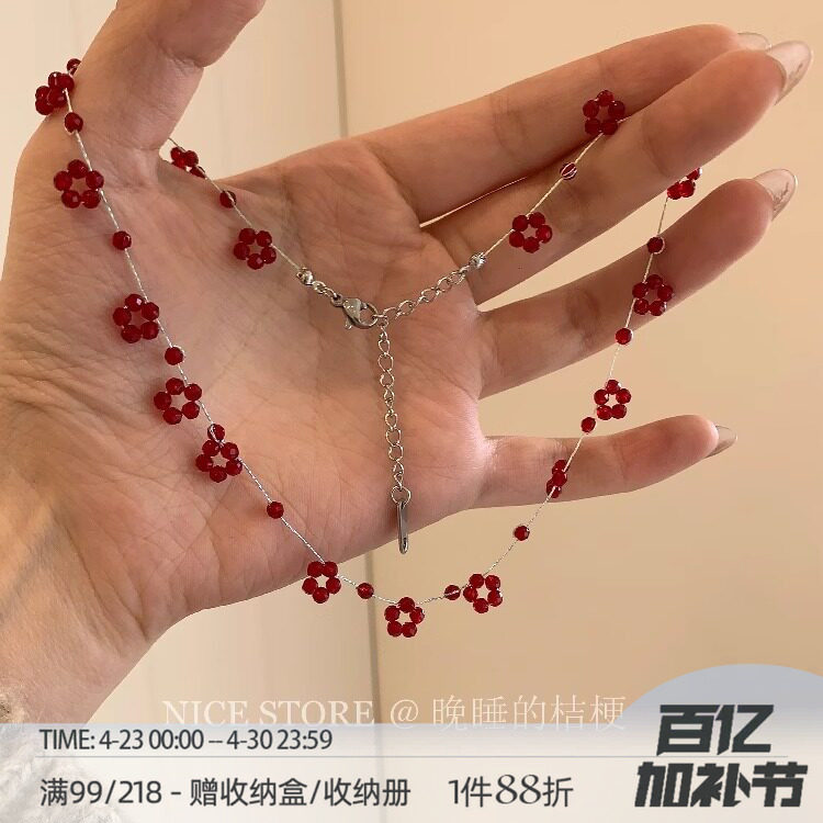 晚睡的桔梗「山野莓莓」夏日小清新红色多切面串珠项链显白锁骨链