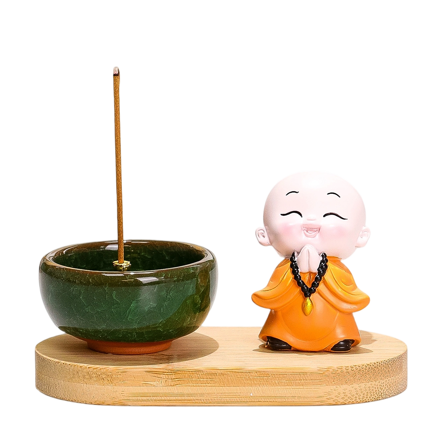 禅意慧圆小和尚木底香薰炉桌面创意摆件家居客厅办公室茶桌装饰品