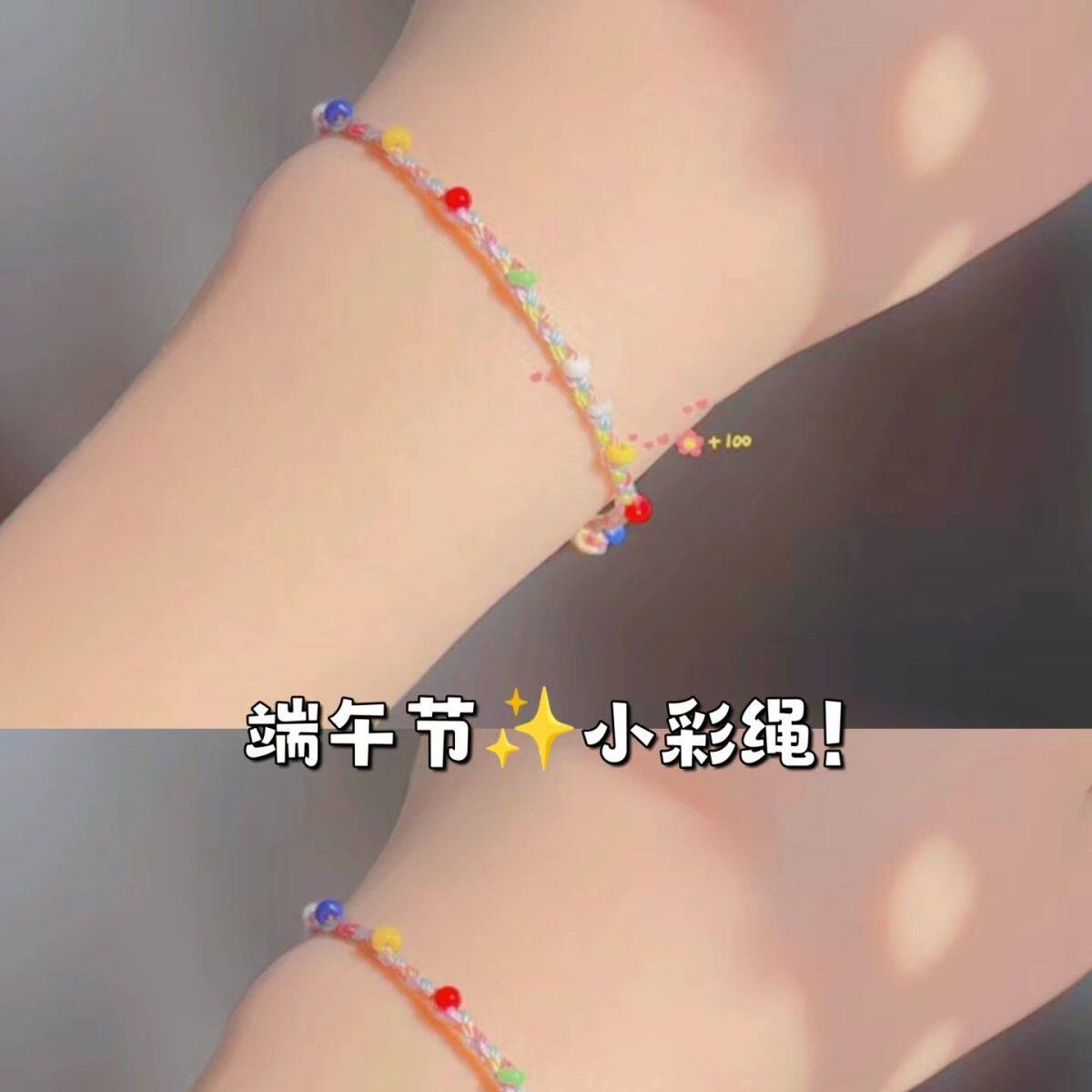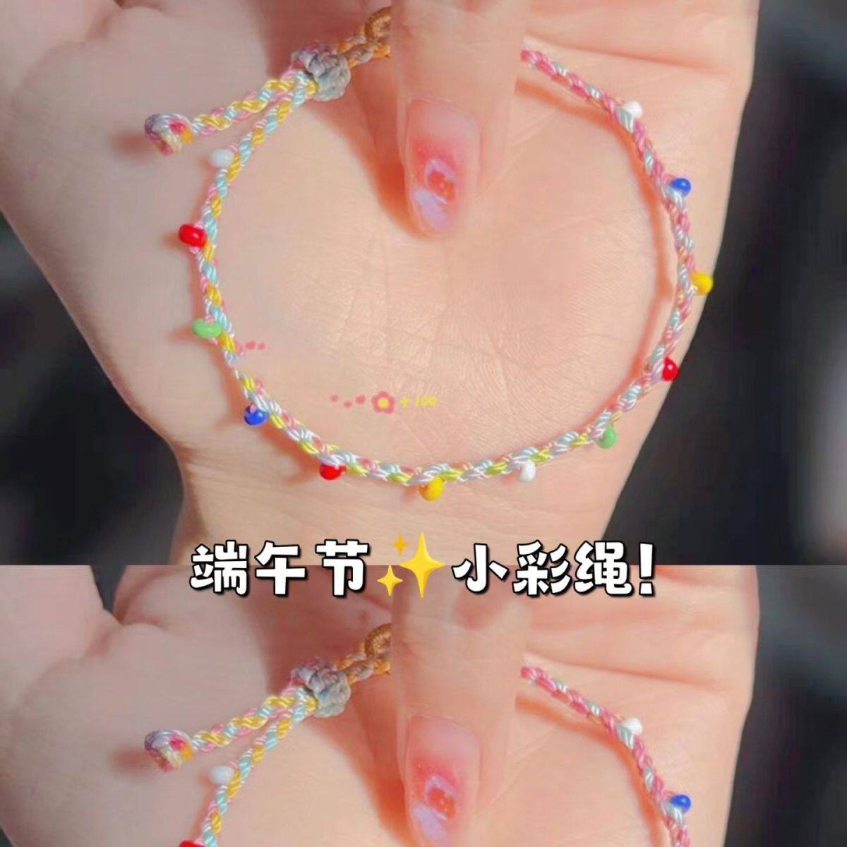 端午多巴胺马卡龙五彩绳手链编织细手绳可爱甜美少女儿童成人礼物
