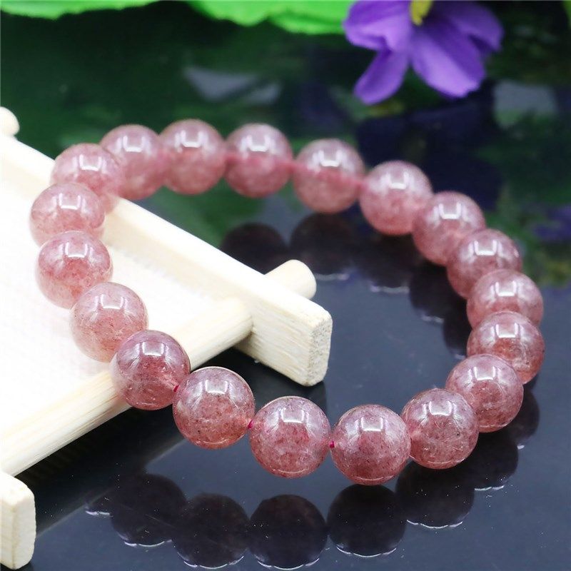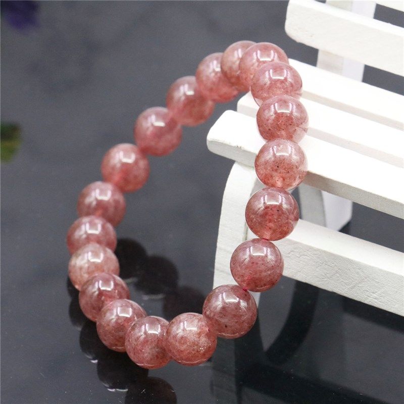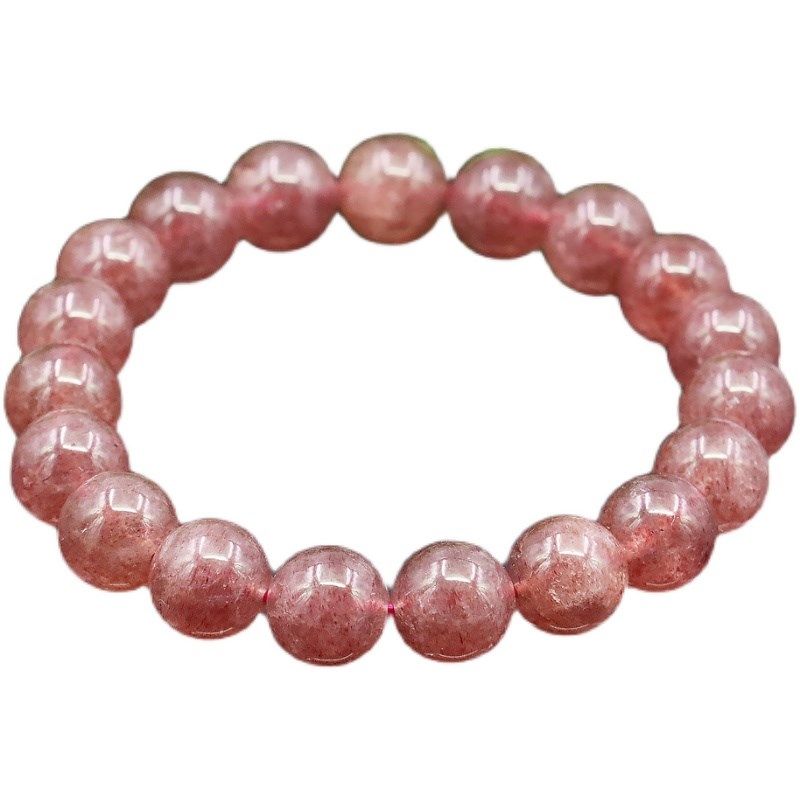 10mm天然草莓晶手链手排 圆珠桃花运饰品手串 单圈女款旺姻缘礼物