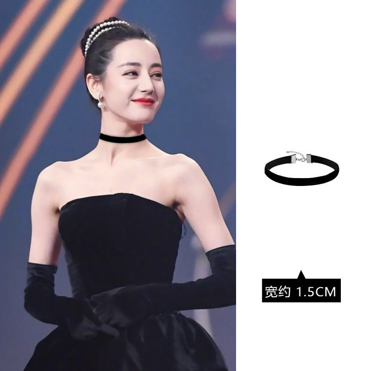 鞠婧祎同款黑色礼服项链丝绒颈圈女赫本风天鹅绒项圈choker锁骨链