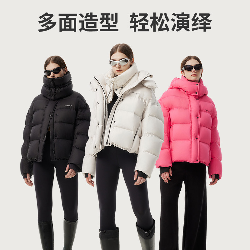 坦博尔冬季羽绒服女士短款可脱卸帽款加厚保暖面包服泡芙潮流外套