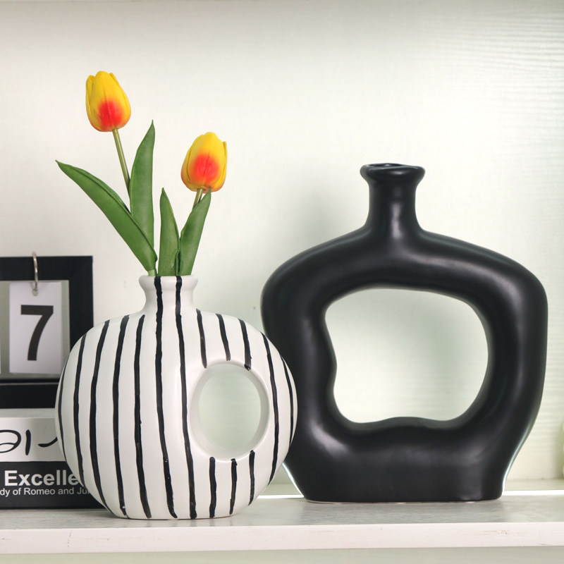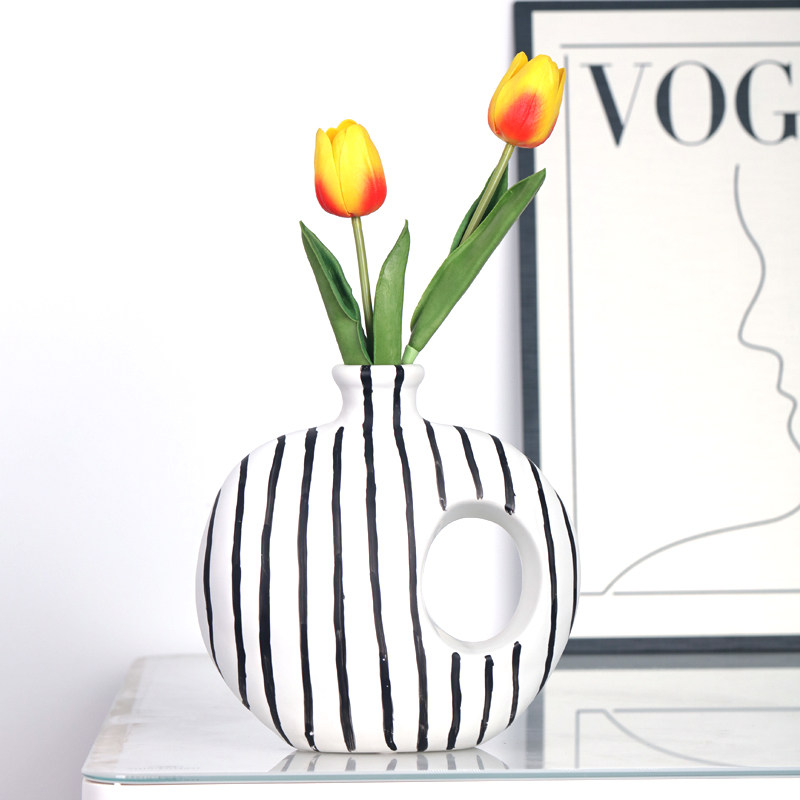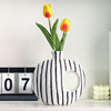 陶瓷花瓶摆件客厅插鲜花高级感网红复古美式白色干花陶罐条纹餐桌